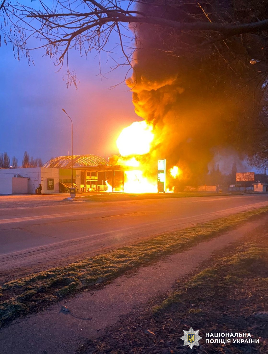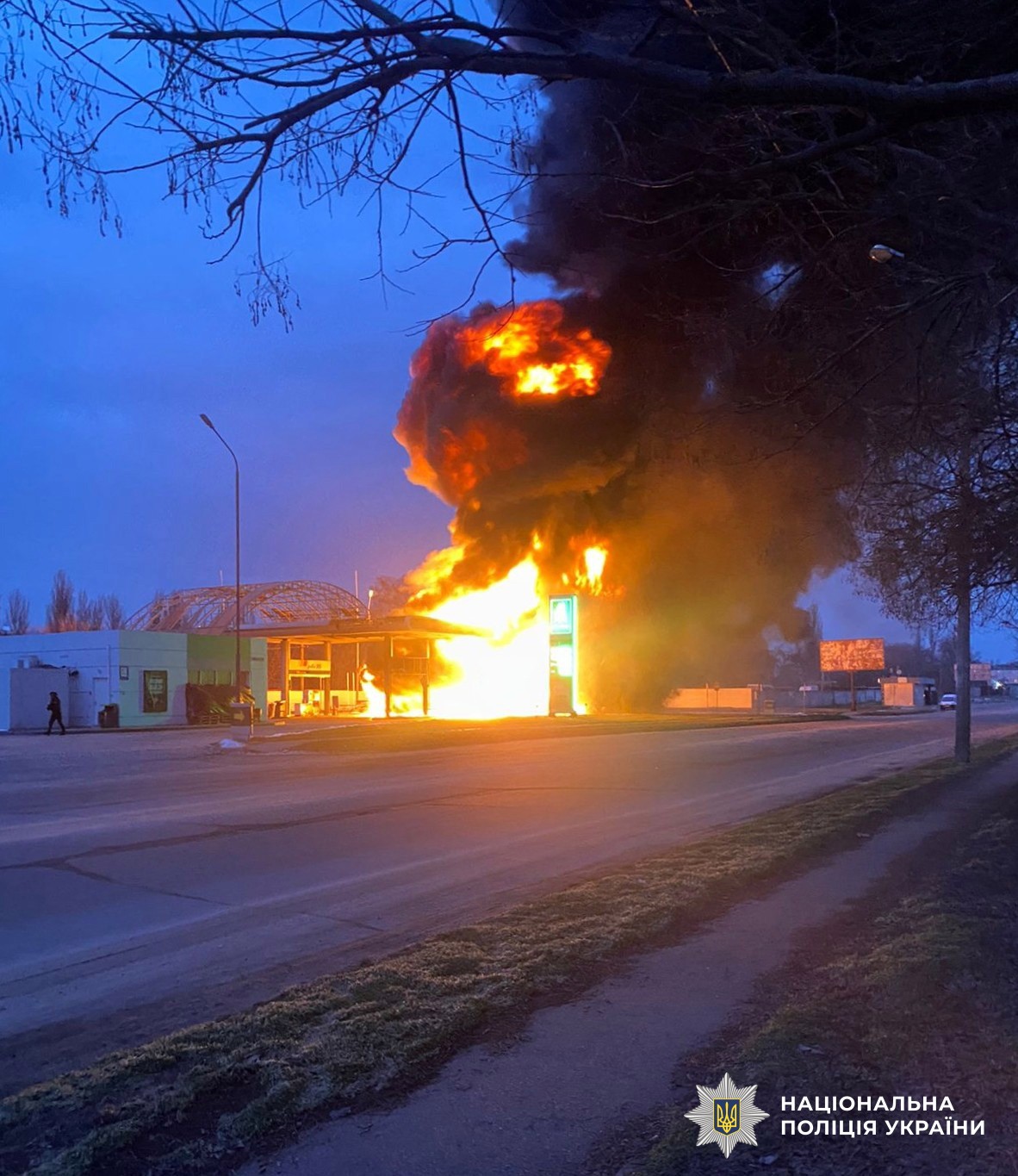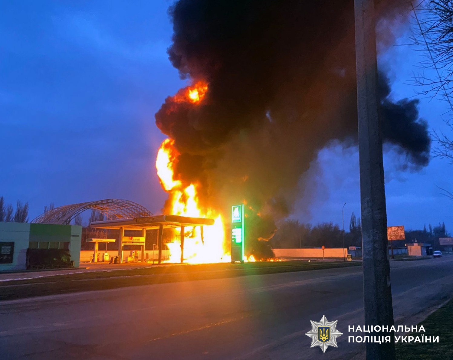 Ввечері у мікрорайоні «Таврійський» дрон типу «FPV» атакував АЗС. Влучання сталося по бензовозу, внаслідок чого зайнялася масштабна пожежа. Вогонь загасили рятувальники. На щастя, обійшлося без постраждалих. Автомобіль вигорів вщент. Також пошкоджено об’єкти на території станції.