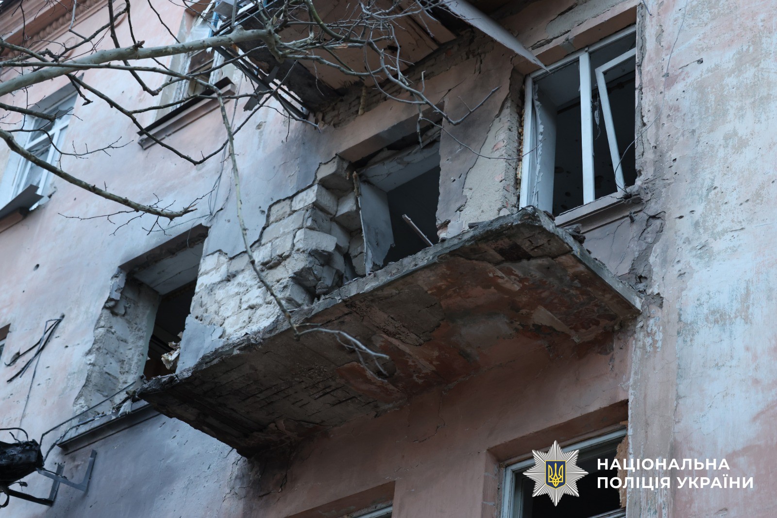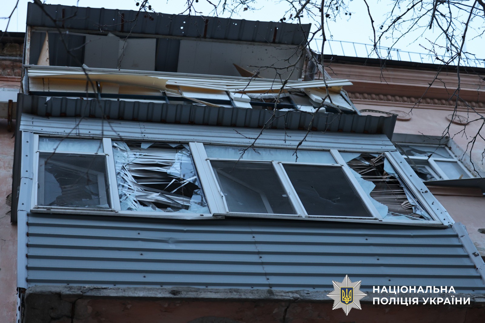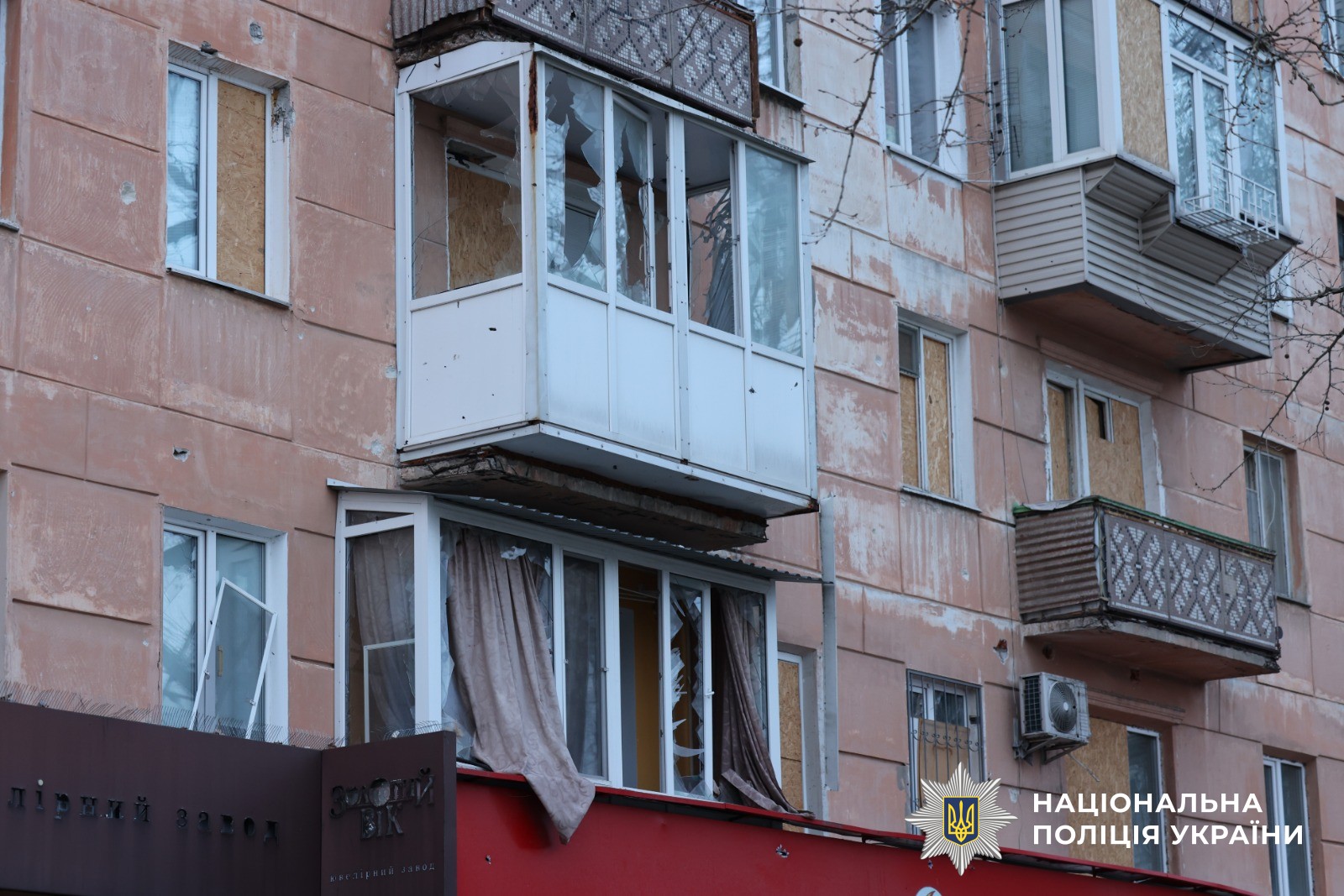 Поліція зафіксувала пошкодження п’яти багатоквартирних та семи приватних будинків, об’єкта критичної інфраструктури, медичного закладу, двох автомобілів, газопроводу.