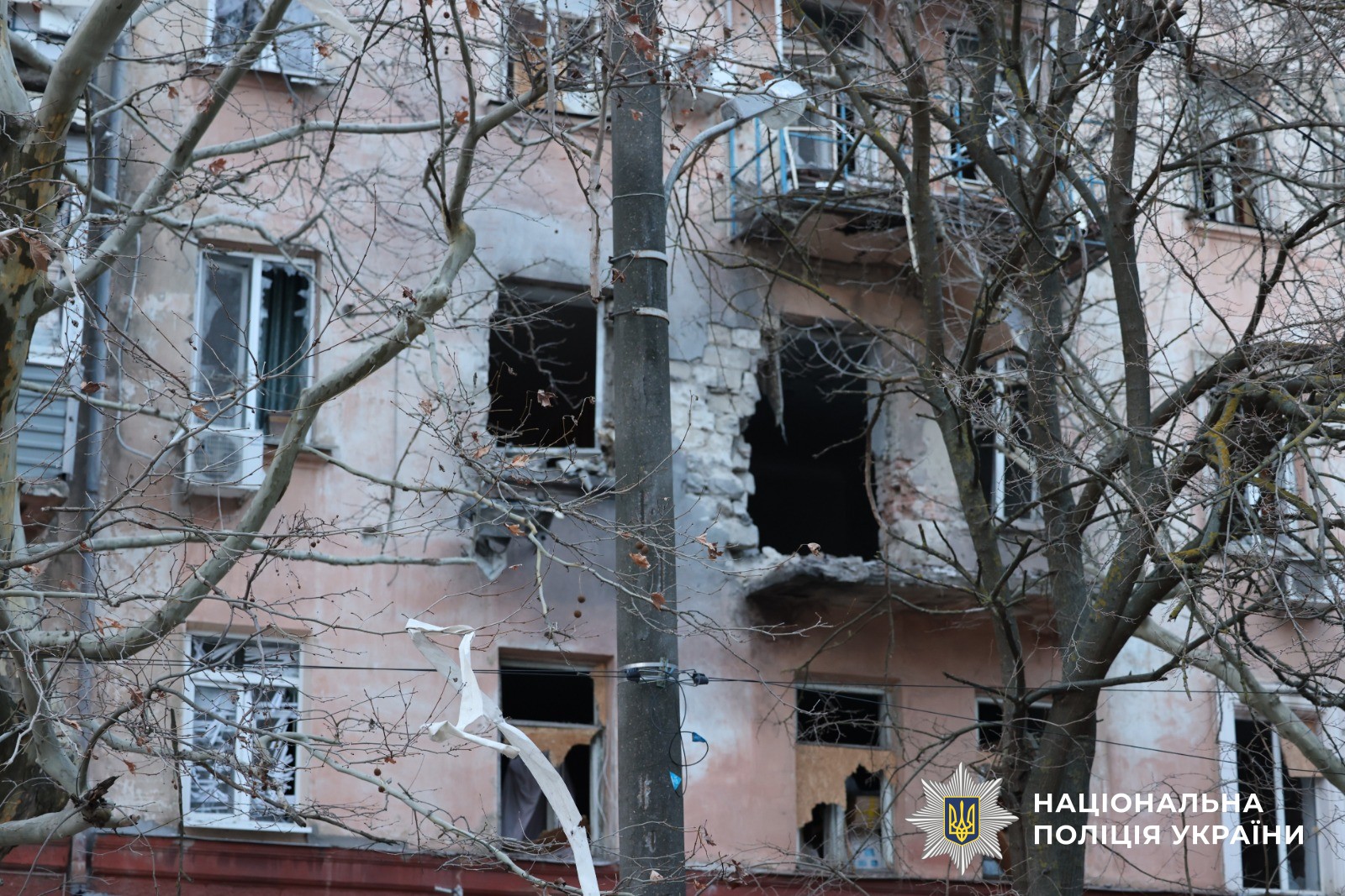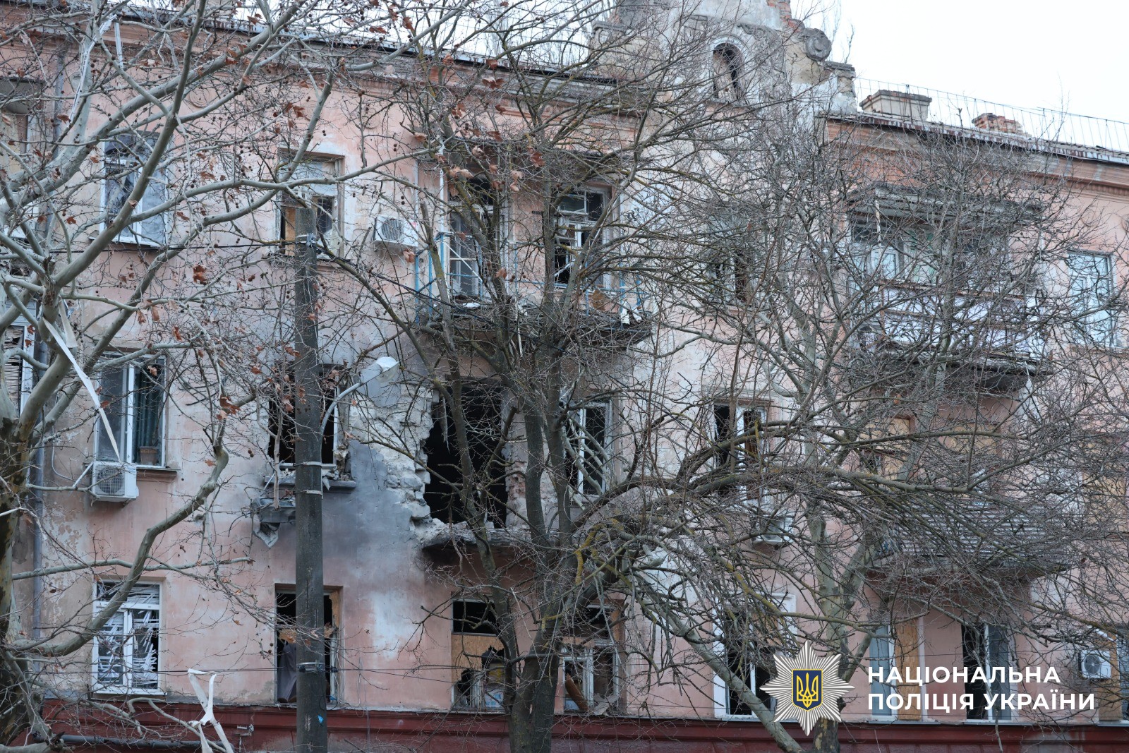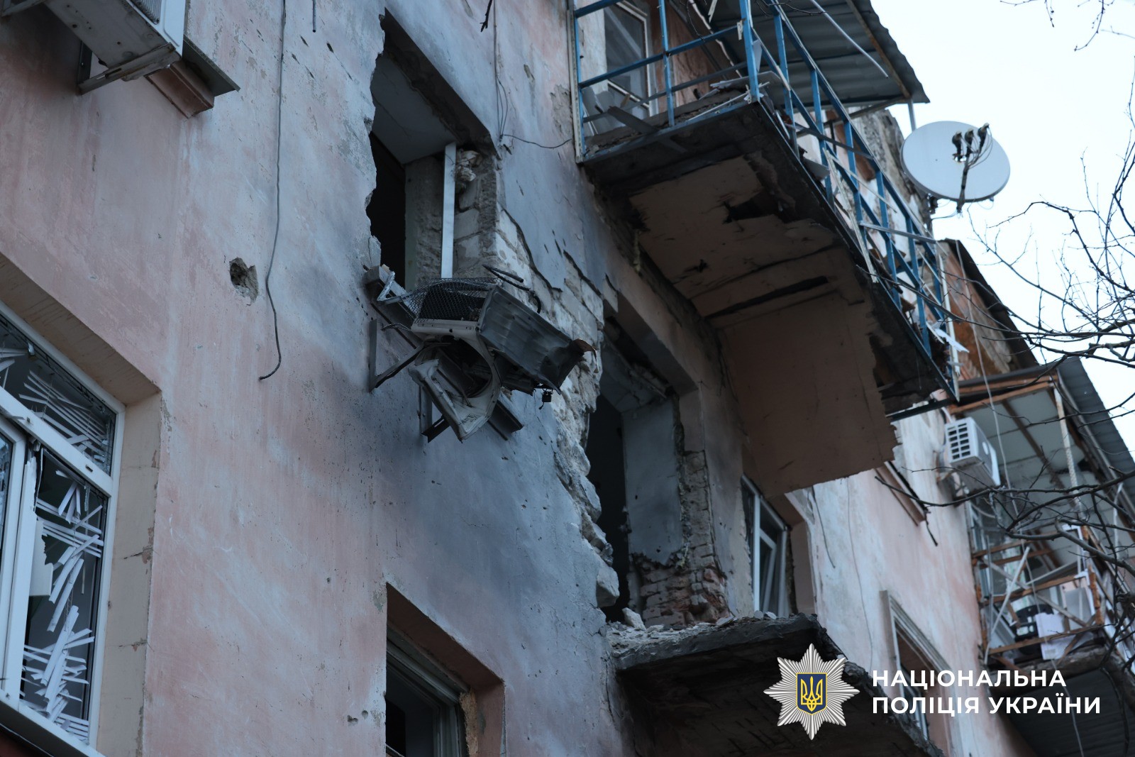 Поліція зафіксувала пошкодження п’яти багатоквартирних та семи приватних будинків, об’єкта критичної інфраструктури, медичного закладу, двох автомобілів, газопроводу.