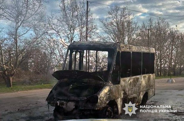 Також росіяни цілеспрямовано вдарили дроном типу «FPV» по маршрутному автобусу, який згорів. На щастя, водій та пасажири встигли вибігти з транспортного засобу і не постраждали.