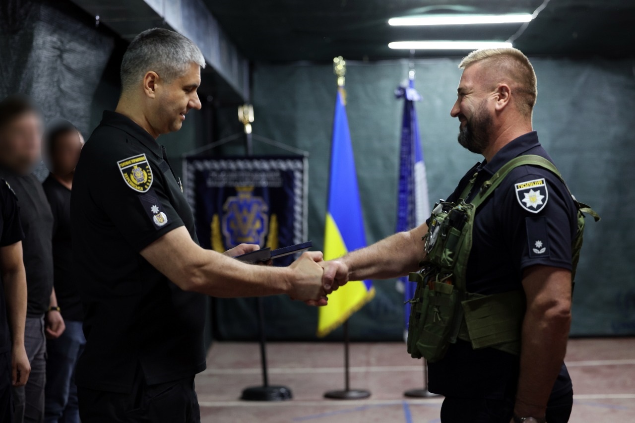Відзнаки Президента України «За оборону України», нагрудні знаки «За безпеку народу», подяки Національної поліції України та Знаки Пошани херсонським поліцейським вручив начальник Головного управління Національної поліції в Херсонській області Роман Козьяков. Він подякував кожному за службу, наголосивши, що нині працівники спецпідрозділів поліції стоять пліч-о-пліч із воїнами ЗСУ на передовій, боронять українські землі від окупантів та мають безцінний бойовий досвід.