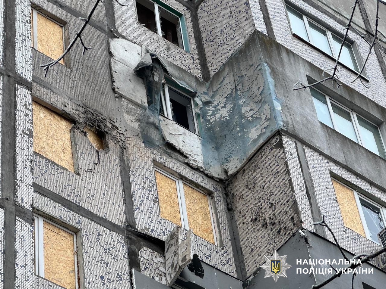 Вдень у Дніпровському районі Херсона через скид вибухівки з БпЛА постраждали двоє працівників поліції. В одного діагностували уламкові поранення руки та ноги, в іншого – контузію.