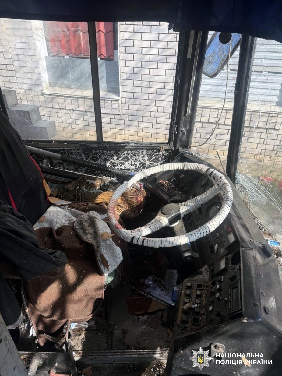 Згодом ворожий FPV-дрон атакував тролейбус. В результаті вибуху від отриманих травм у лікарні під час надання допомоги помер 52-річний водій. Також пошкоджено багатоквартирний будинок.