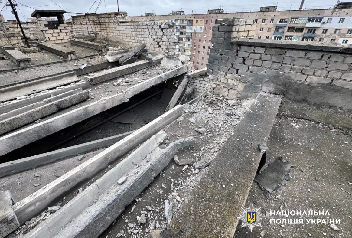 Вдень біля магазину у Дніпровському районі Херсона в результаті скидання вибухівки з БпЛА 62-річний чоловік отримав вибухову травму й уламкове поранення стегна.