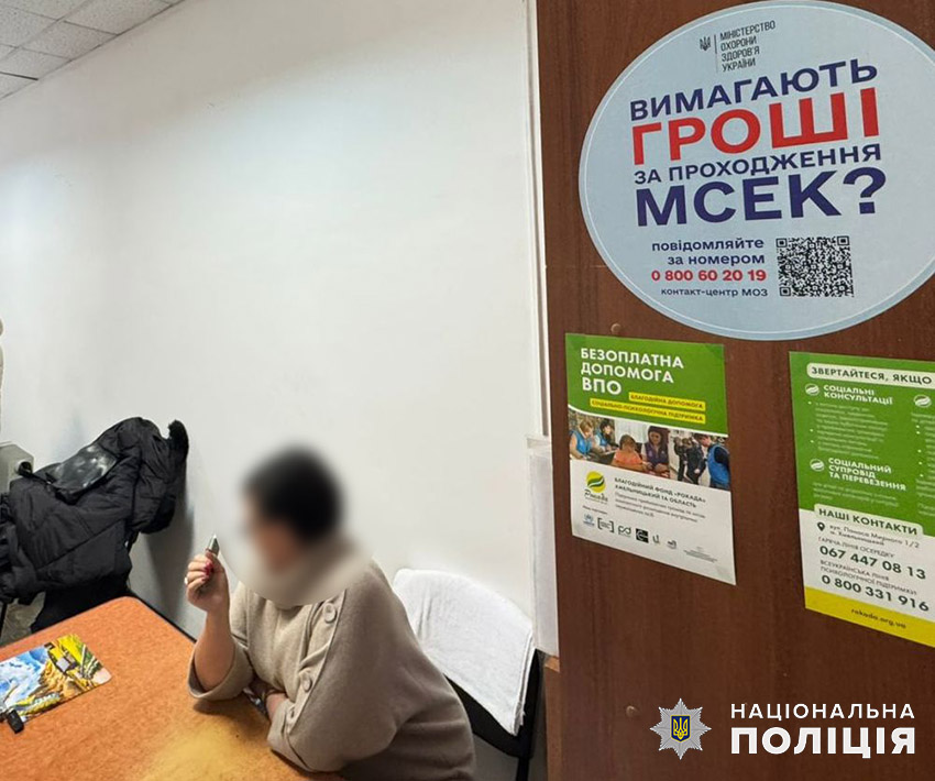 16 грудня 2024 року поліцейські затримали голову центру медико-соціальної експертизи після отримання обумовленої суми у порядку статті 208 Кримінального процесуального кодексу України. Під час обшуків правоохоронці вилучили, окрім суми неправомірної вигоди, ще понад 26 000 доларів.