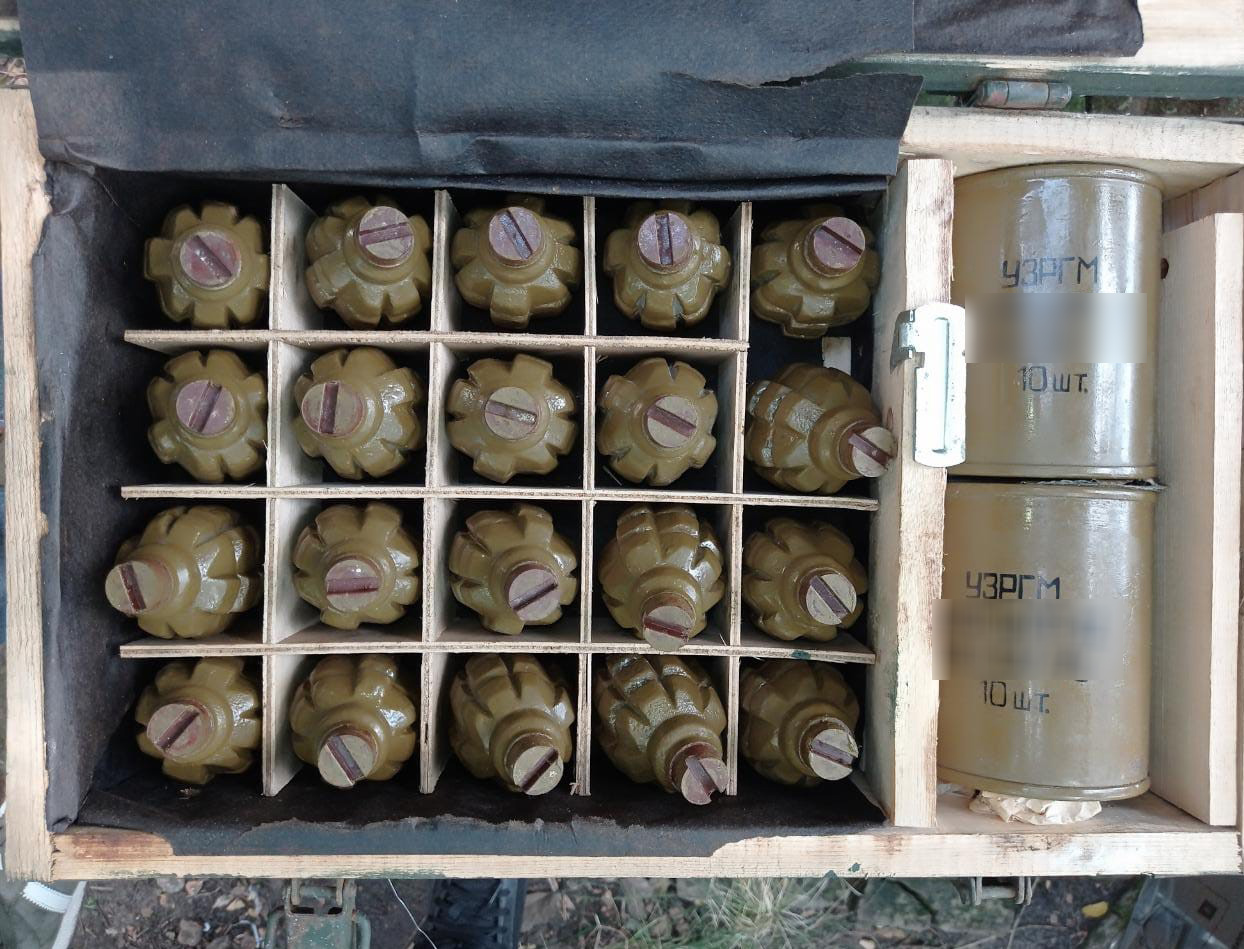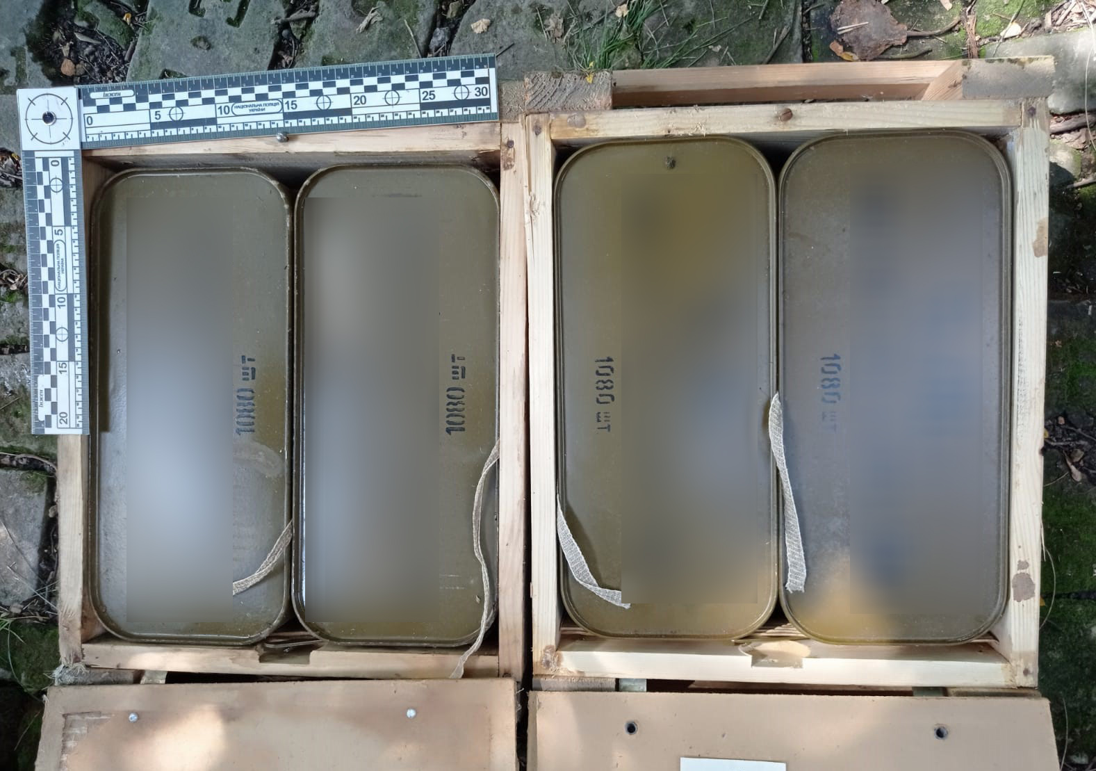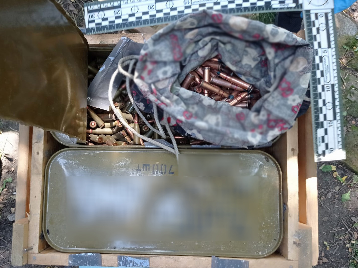 «Правоохоронці встановили, що чоловік зберігав у домоволодінні родички зброю та боєприпаси. У результаті проведення санкціонованого обшуку поліцейські виявили та вилучили два автомати «Калашникова» АКМС калібру 7,62 мм, підствольний гранатомет до автомата, 20 корпусів гранат Ф-1 та запали до них, а також понад сім тисяч набоїв калібру 7,62 мм та 5,45 мм.