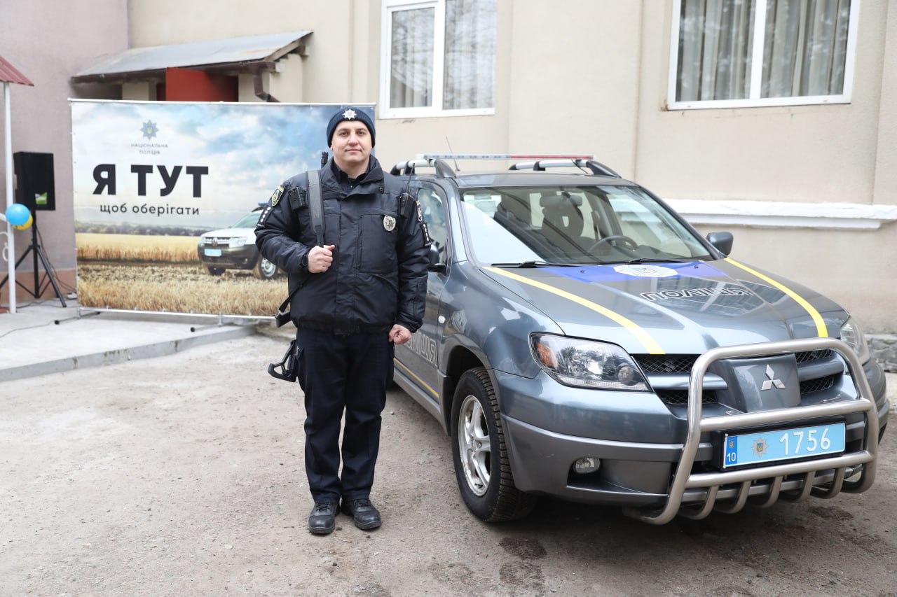 Також голова територіальної громади передала офіцеру ключі від службового автомобіля. Капітан поліції Сергій Кінтер стоятиме на варті та обслуговуватиме 10 населених пунктів.