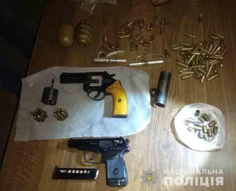 Чоловік зберігав у своєму помешканні пістолет, револьвер, глушник, гранати Ф-1 та РГД-5, запали до гранат, а також більше 100 патронів різного калібру. Окрім цього, поліцейські вилучили понад 70 г наркотичного засобу «канабіс».
