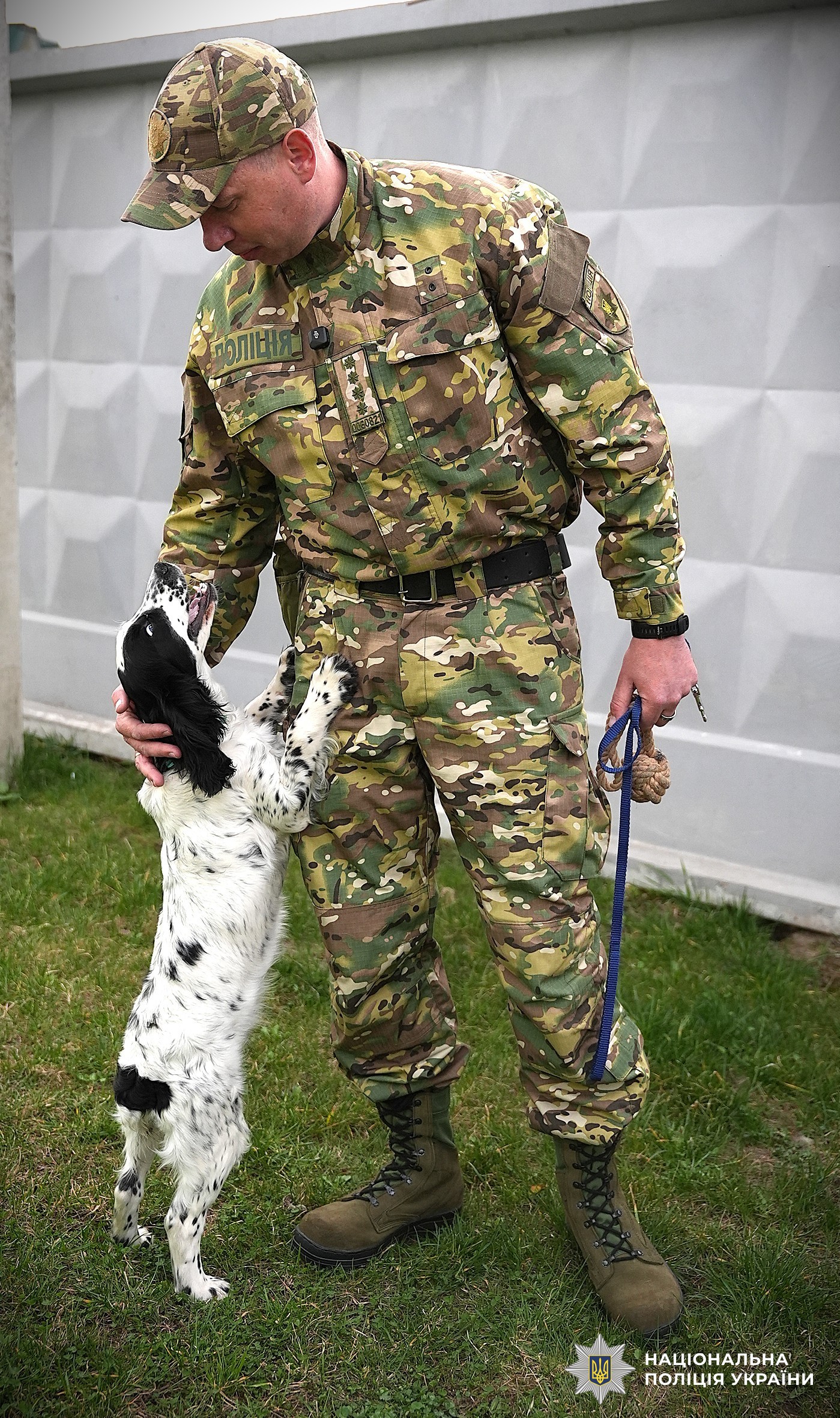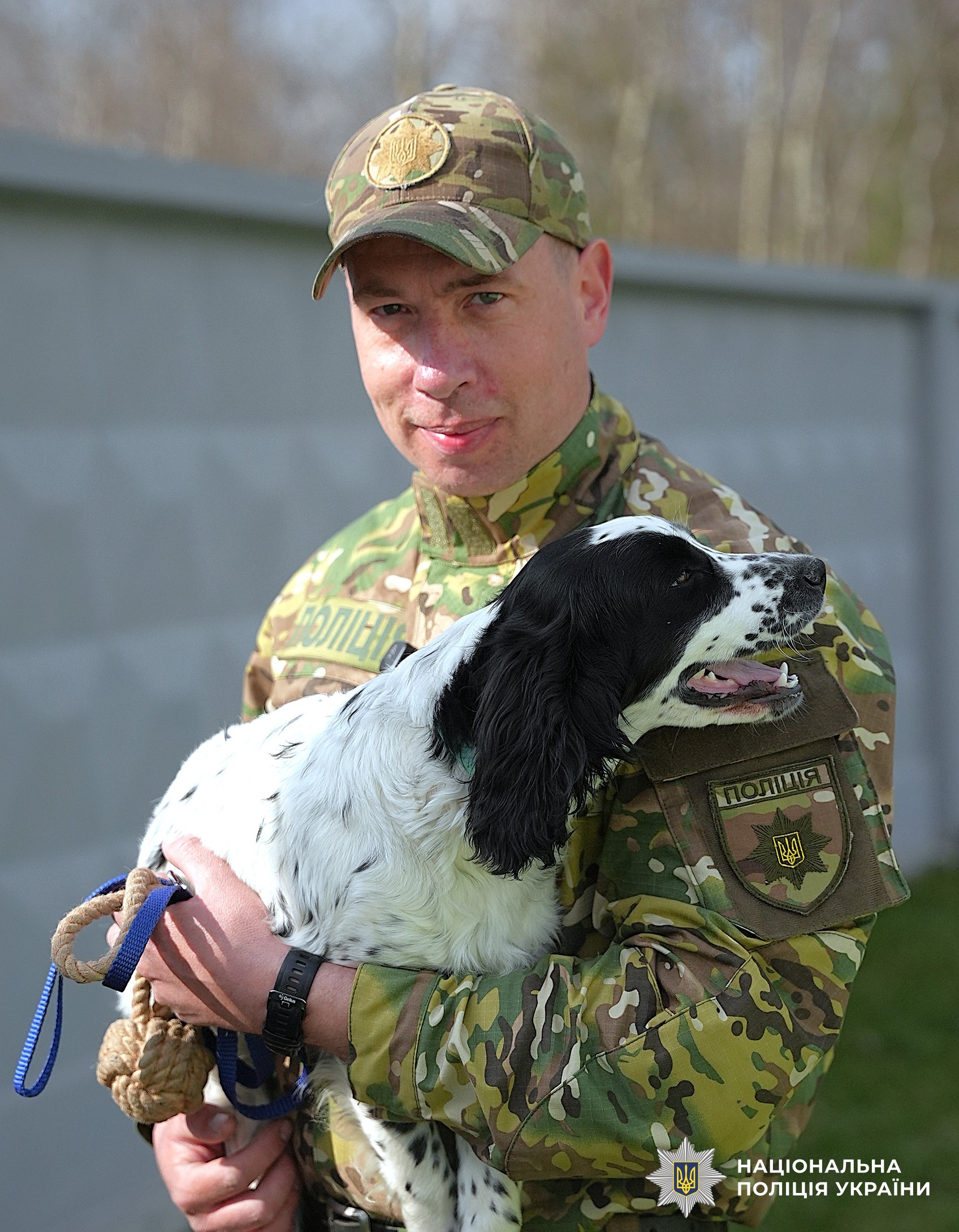 «Якщо собака працює по вибухівці, вона повинна мати пасивне позначення: сісти, завмерти і не взаємодіяти з предметом. Це сигнал для кінолога про потенційну небезпеку», — наголошує поліцейський.