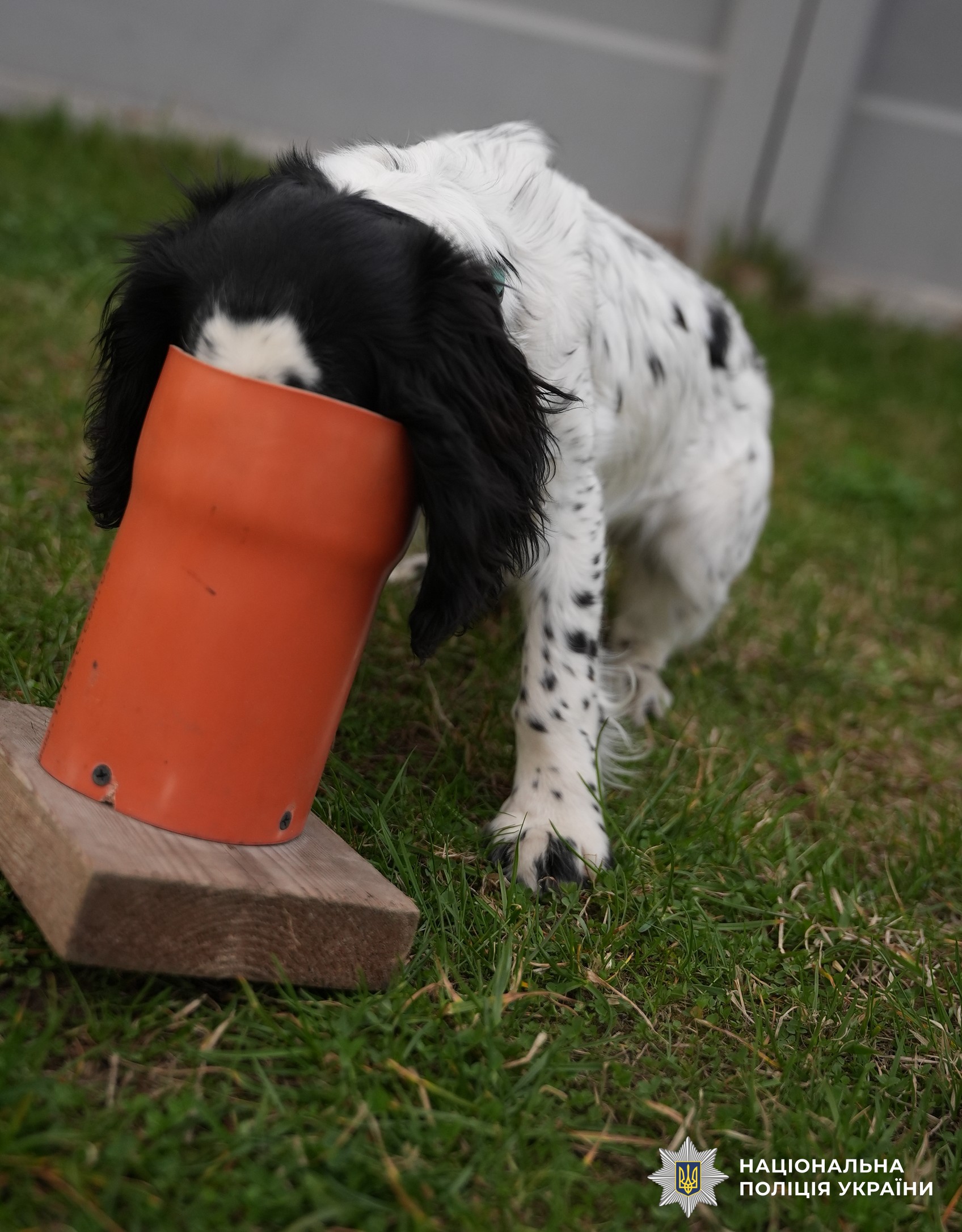 Як розповідає старший інспектор-кінолог, капітан поліції Андрій Макух, на цьому етапі головне завдання — сформувати у собаки правильну пошукову поведінку.