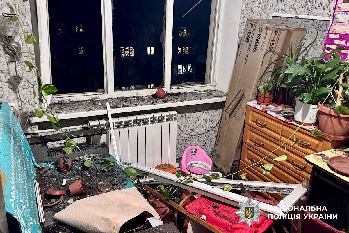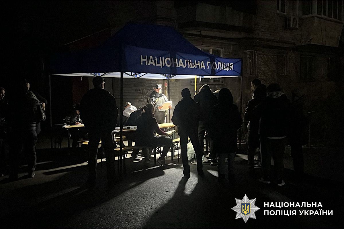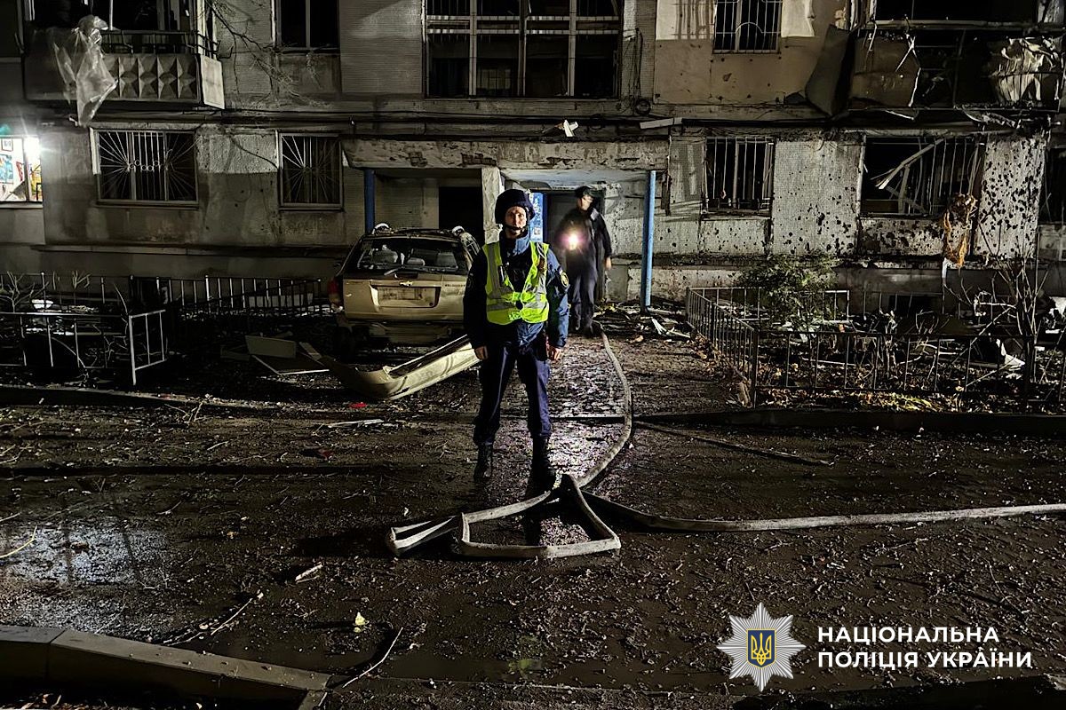 Упродовж ночі та зараз поряд з місцем атаки продовжує працювати поліцейський пункт прийому звернень громадян, куди мешканці звертаються із заявами про пошкодження майна внаслідок російської атаки. Поліція продовжує фіксацію наслідків ворожих ударів та надає допомогу постраждалим людям.