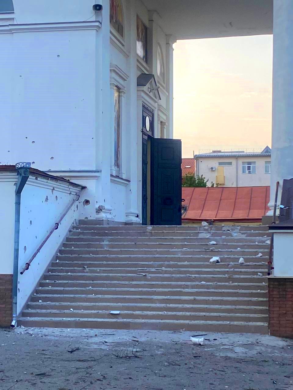 Ворог продовжує нищити історичний, старий центр Херсона. Під час чергового обстрілу снаряди від РСЗВ пошкодили собор, який є історико-архітектурною пам’яткою міста початку XIX століття, також пошкоджено будівлі, які датуються початком XX століття, в будинках пошкоджена покрівля, фасади та архітектурно-художнє оздоблення.