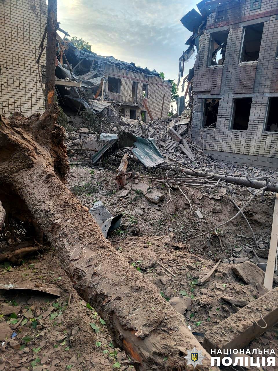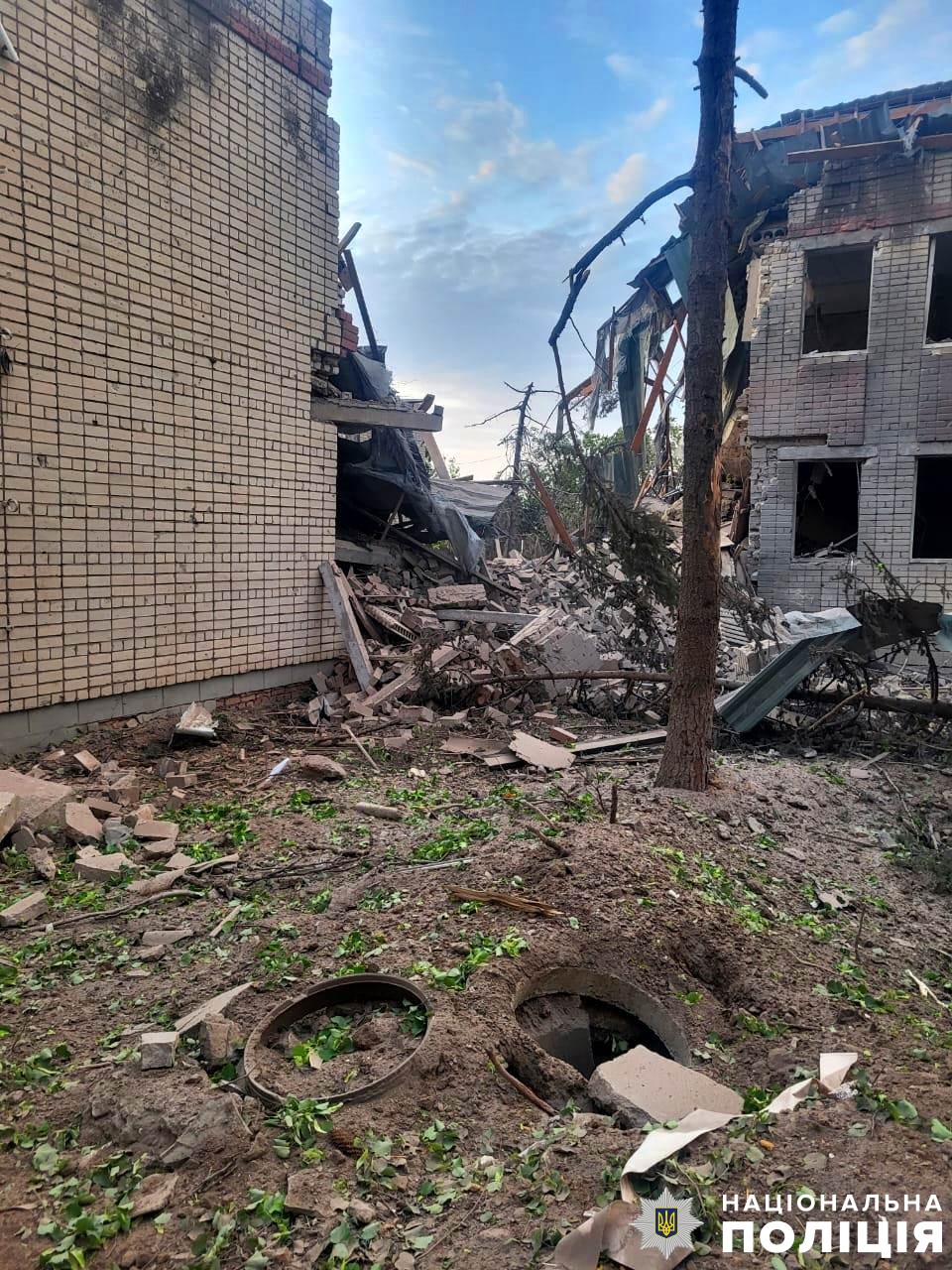 На правобережжі Херсонщини поліція фіксує наслідки російських атак на навчальний заклад, підприємство та житлові будинки
