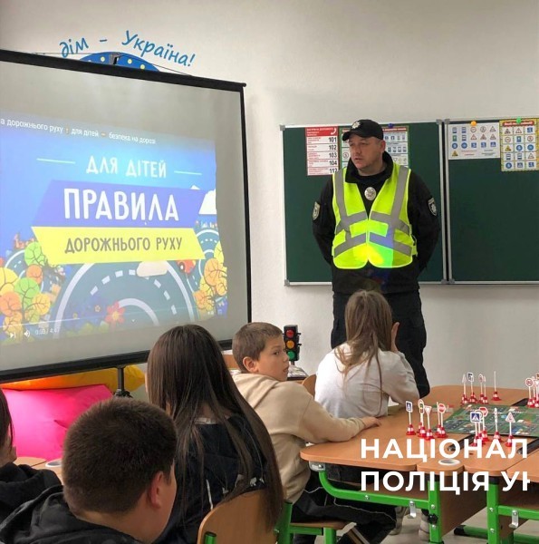 Поліцейські наголосили учням про основні правила дорожнього руху, пояснили як правильно переходити дорогу, а також нагадали, що в темну пору доби необхідно використовувати світлоповертаючі елементи.