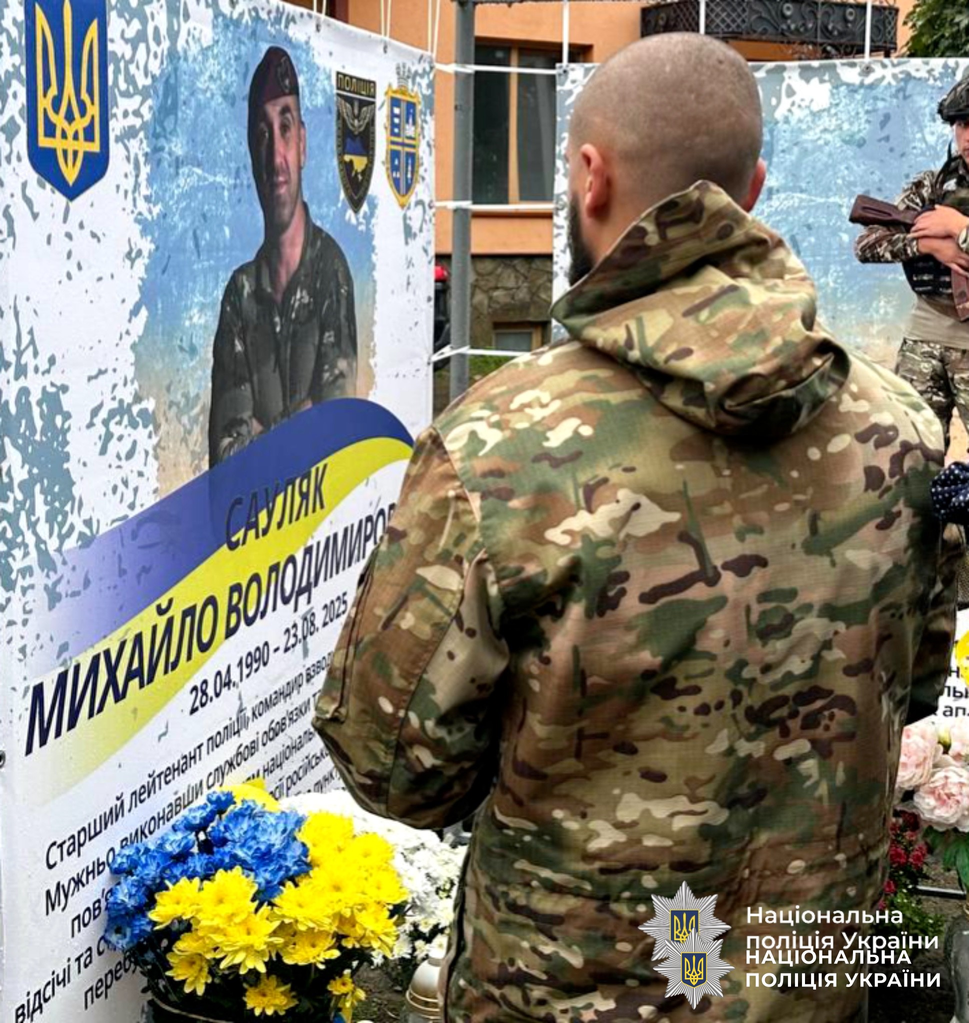 На Прикарпатті відкрили пам’ятний банер загиблому поліцейському Михайлу Сауляку