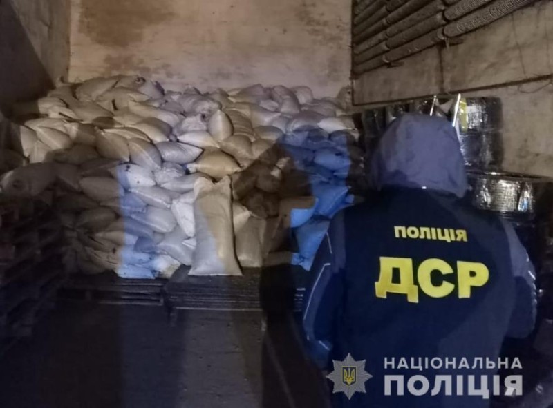 Наразі завершився ще один обшук, в ході якого у складському приміщенні виявлено 1554 поліетиленових мішків та коробок з речовиною рослинного походження, зовні схожою на канабіс. Вага кожного з них від 5,5 кг до 60 кг. Вартість вилученого за цінами «чорного» ринку складає більше 55 мільйонів гривень.