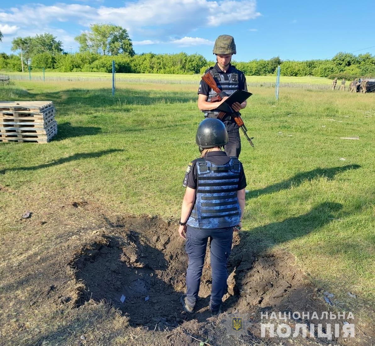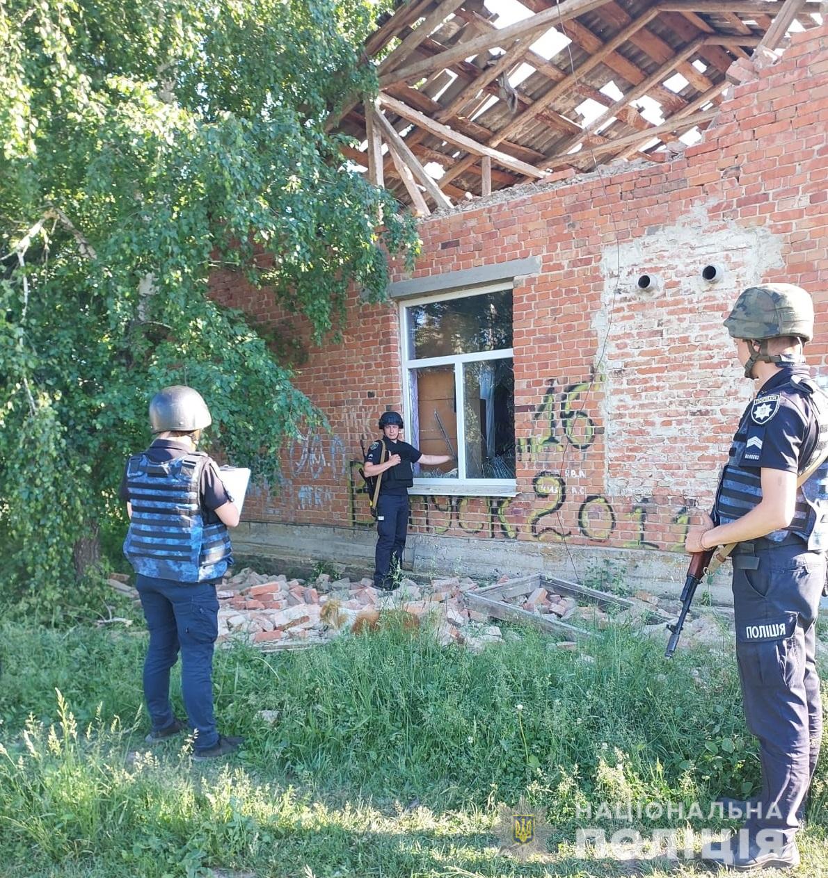 Поліцейські проводять огляд місця події та фіксують наслідки російської агресії.