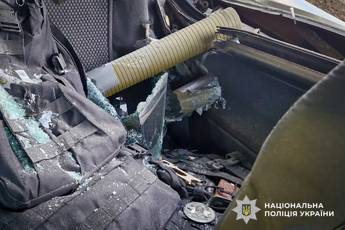 Унаслідок ворожої атаки двоє працівників поліції отримали акубаротравми. Також пошкоджено легковий автомобіль, на якому вони пересувалися.