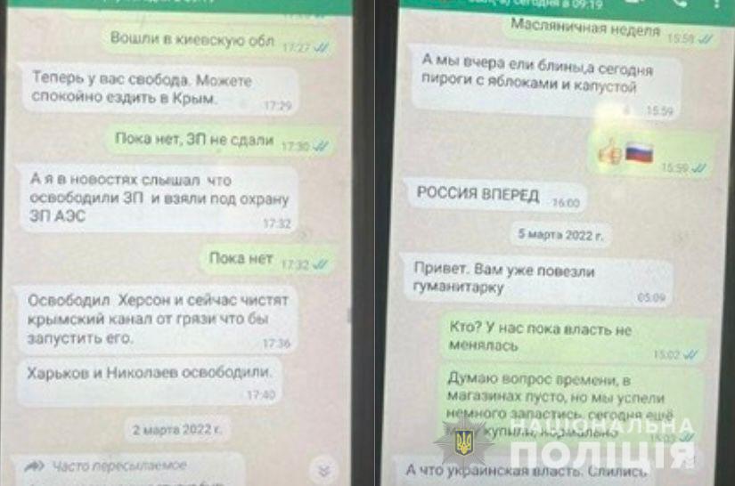 В його телефоні поліцейські виявили відео та інформацію із зазначенням координат розташування захисних споруд. Крім того, виявили листування з абонентами, в яких чоловік активно підтримує дії російських військ на території України.