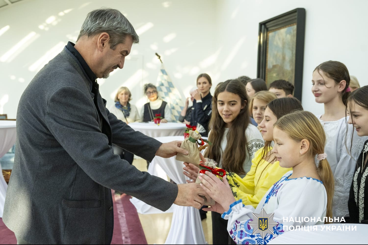 У стінах Баварської державної канцелярії дітей радо зустрів прем’єр-міністр Баварії Маркус Зедер, а маленькі українці з гордістю виконали «Щедрик» Миколи Леонтовича. Свого часу, видатний композитор тривалий час проживав у Покровську на Донеччині. Цим самим діти нагадали всім присутнім — поки в усьому світі лунає улюблена різдвяна композиція, на Покровськ, як і на інші українські міста, продовжують летіти російські ракети та дрони.
