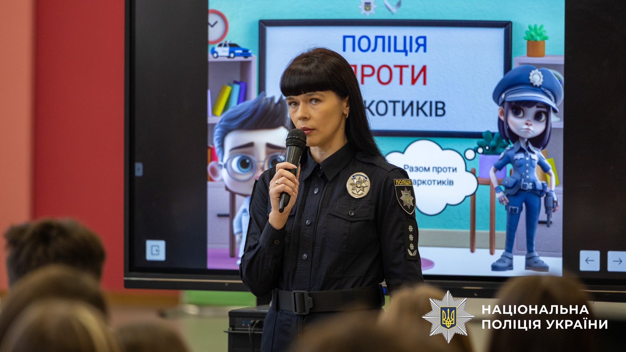 Метою лекції «Наркотики руйнують життя» було нагадати учням про руйнівний вплив наркотиків на життя людини, шляхи формування залежності та юридичну відповідальність за незаконні дії, пов’язані з незаконним обігом наркотичних речовин. Окремо поліцейські наголосили на положеннях ст. 315 Кримінального кодексу України, що передбачає відповідальність за схиляння до вживання наркотиків.