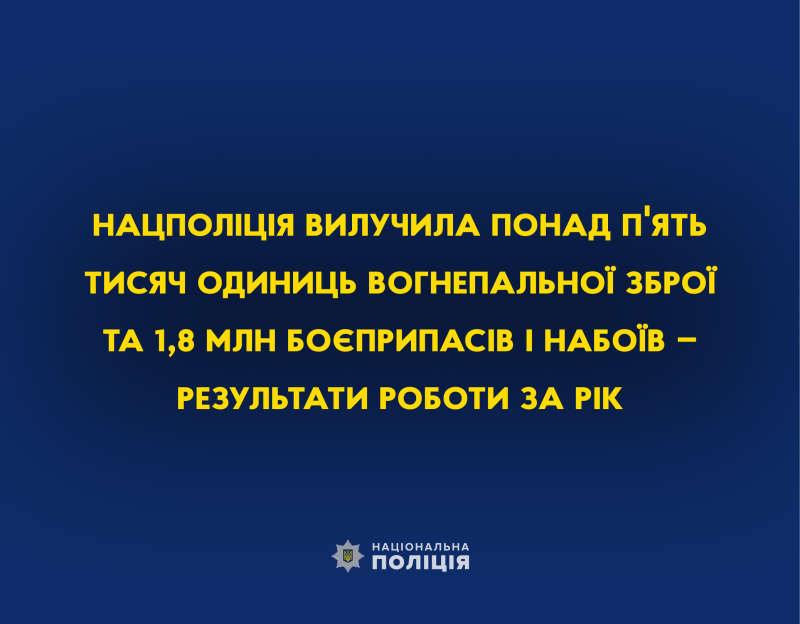 Нацполіція вилучила понад п'ять тисяч одиниць вогнепальної зброї та 1,8 мільйона боєприпасів і набоїв – результати роботи за рік