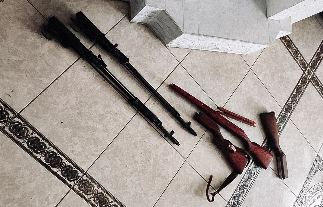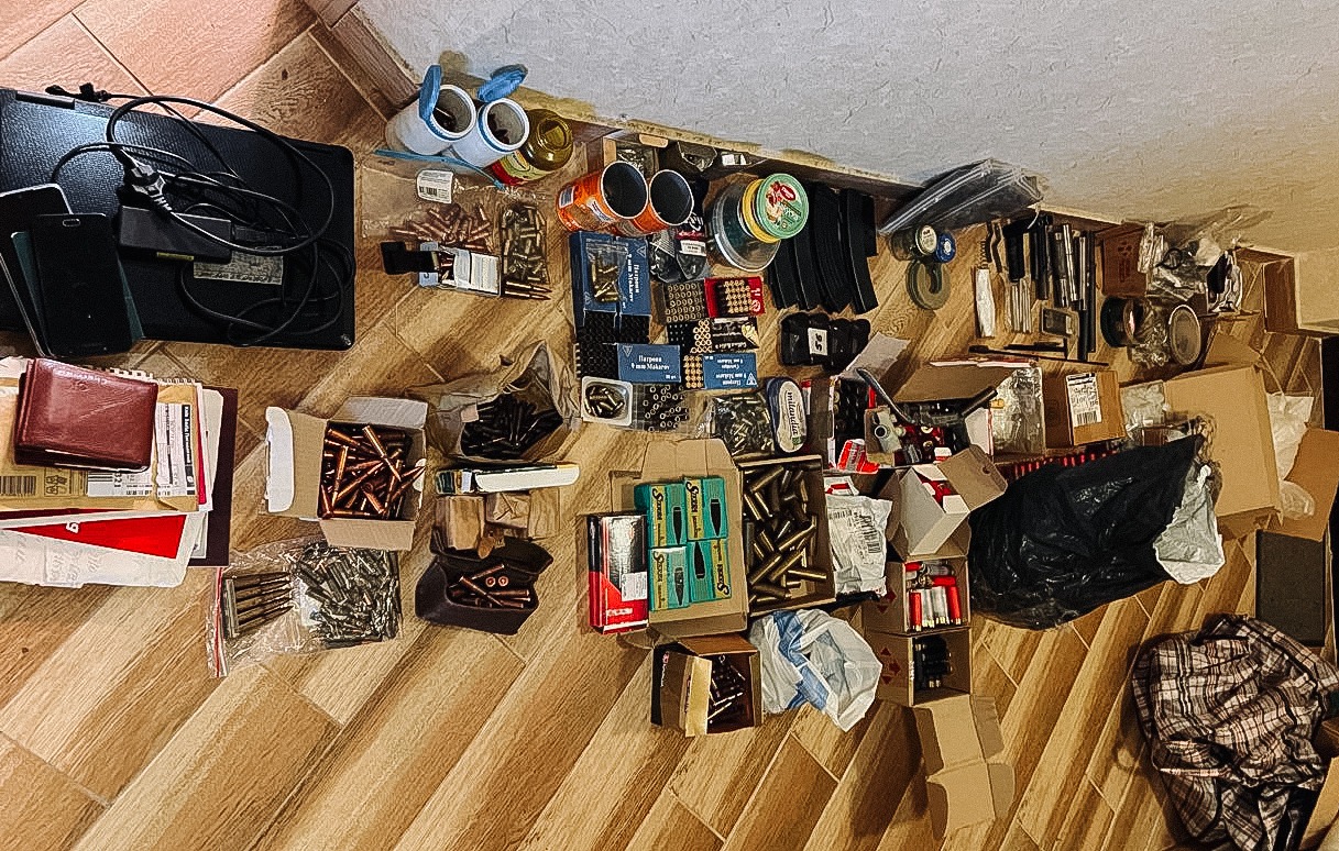 Поліцейські виявили та вилучили вогнепальну зброю, запчастини до неї, боєприпаси та вибухові речовини, у тому числі гвинтівку та елементи до неї, три пістолети, а також 893 набої різного калібру.