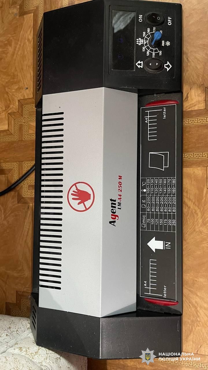 * комп’ютерну техніку, принтери, кліше, бланки документів з голограмами;