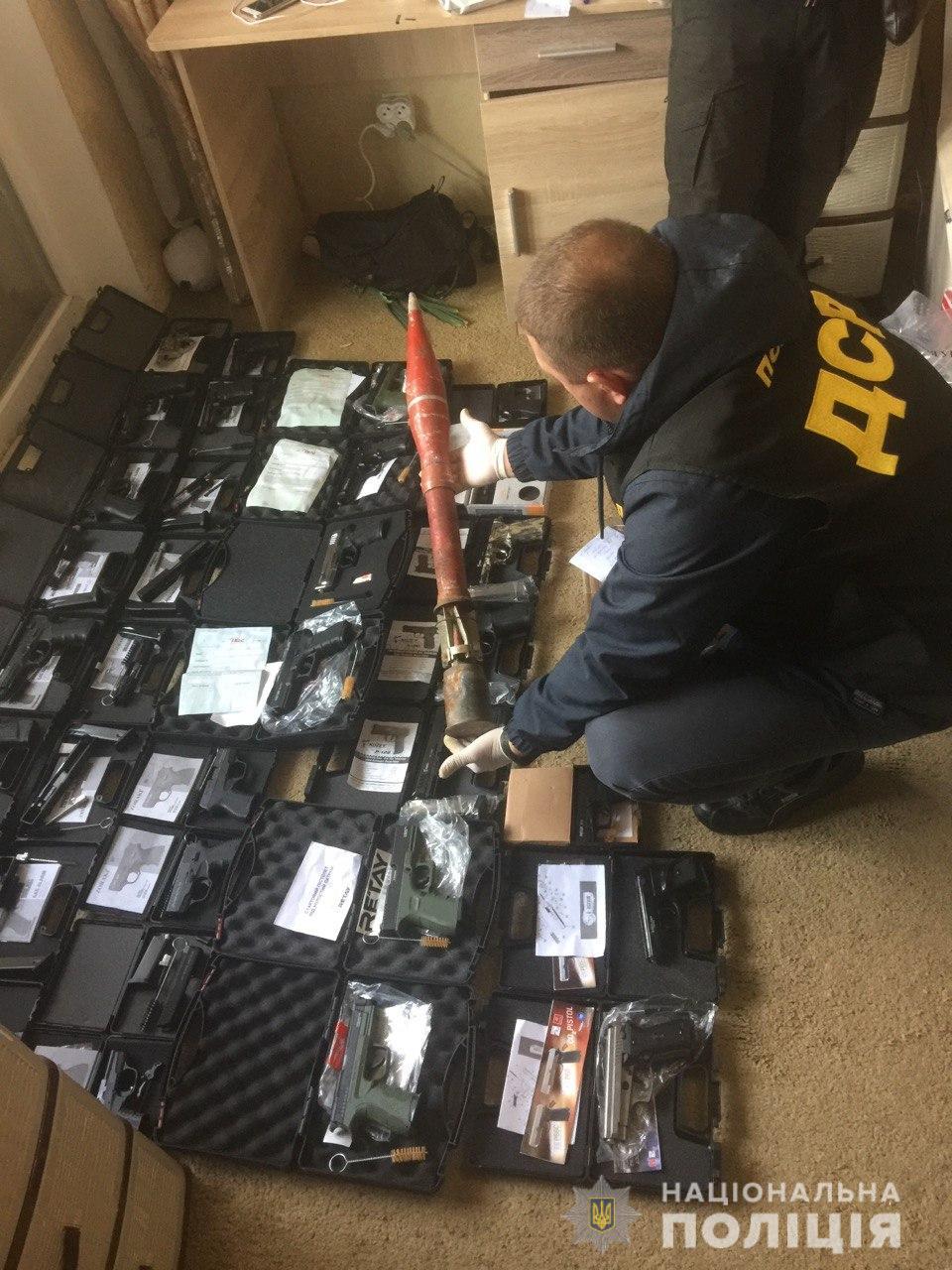 Поліцейські провели 49 санкціонованих обшуків у Дніпропетровській, Харківській, Київській та Тернопільській областях. Вилучили 49 пістолетів, підготовлених до переробки, та бойові пістолети, майже 6000 набоїв різного калібру, снаряд, схожий на боєприпас від РПГ-9, три гранати, складові частини зброї, обладнання, призначене для переробки пістолетів на бойові. Крім того - «чорнові» записи, поштові накладні, 15 000 доларів США, понад 34 000 гривень.