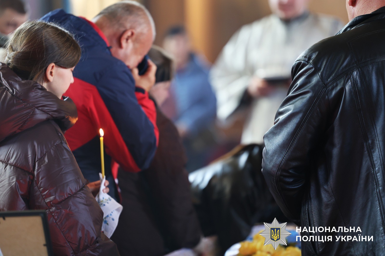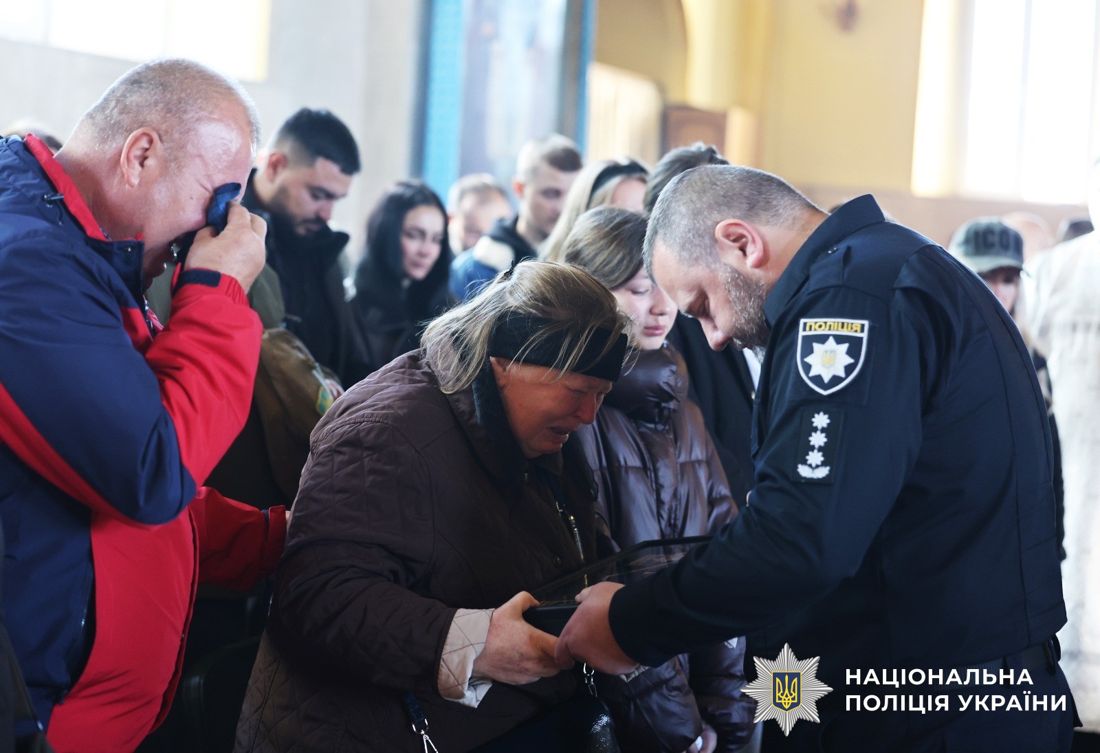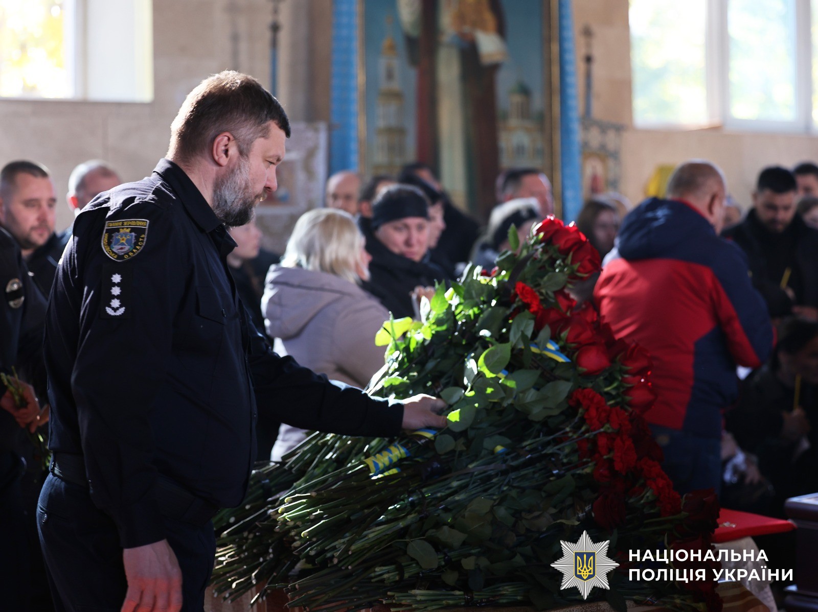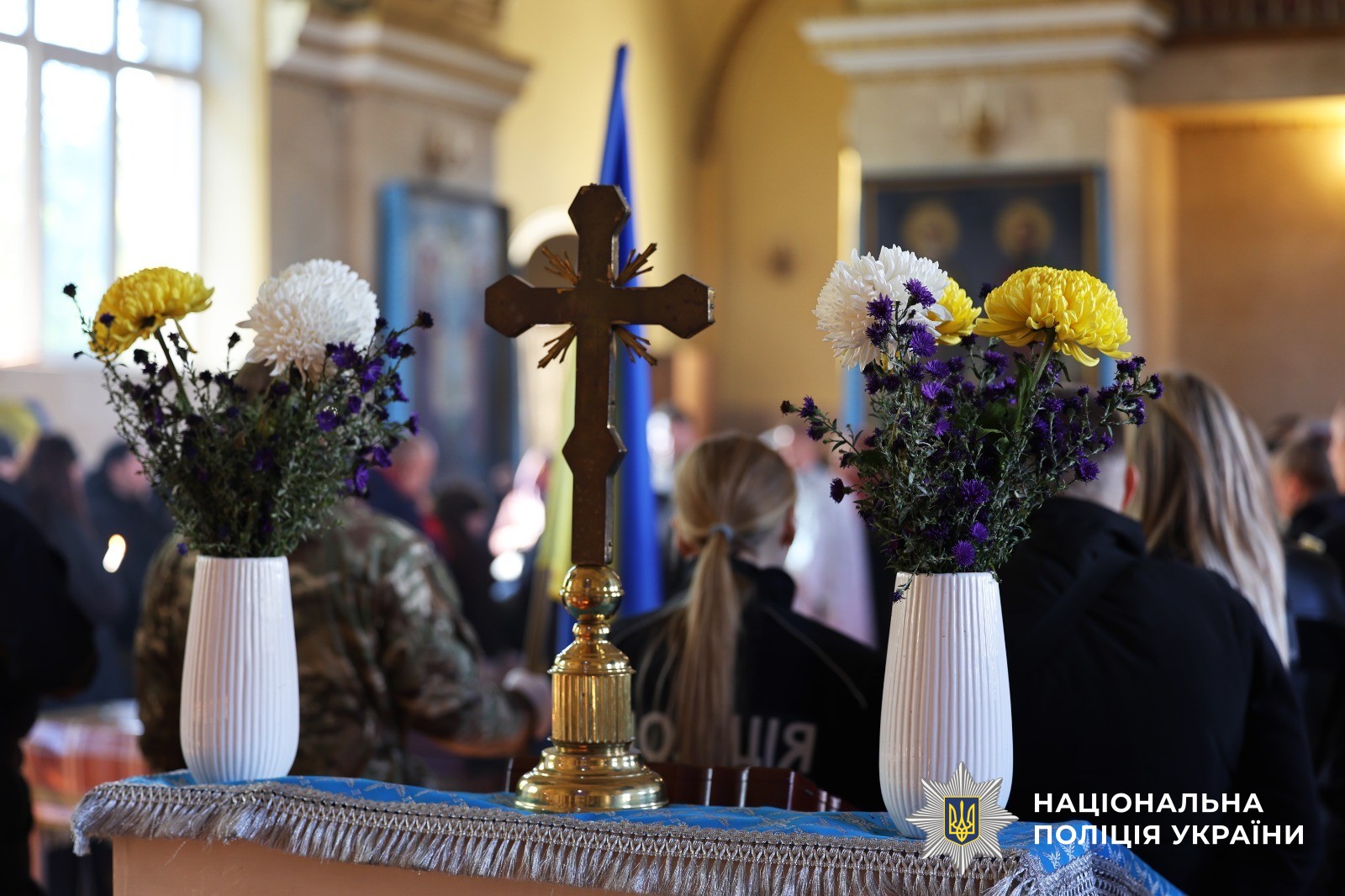 Вшанувати пам'ять загиблого героя, підтримати його родину та провести поліцейського до небесного строю прийшли колеги, керівництво поліції, друзі та побратими.
