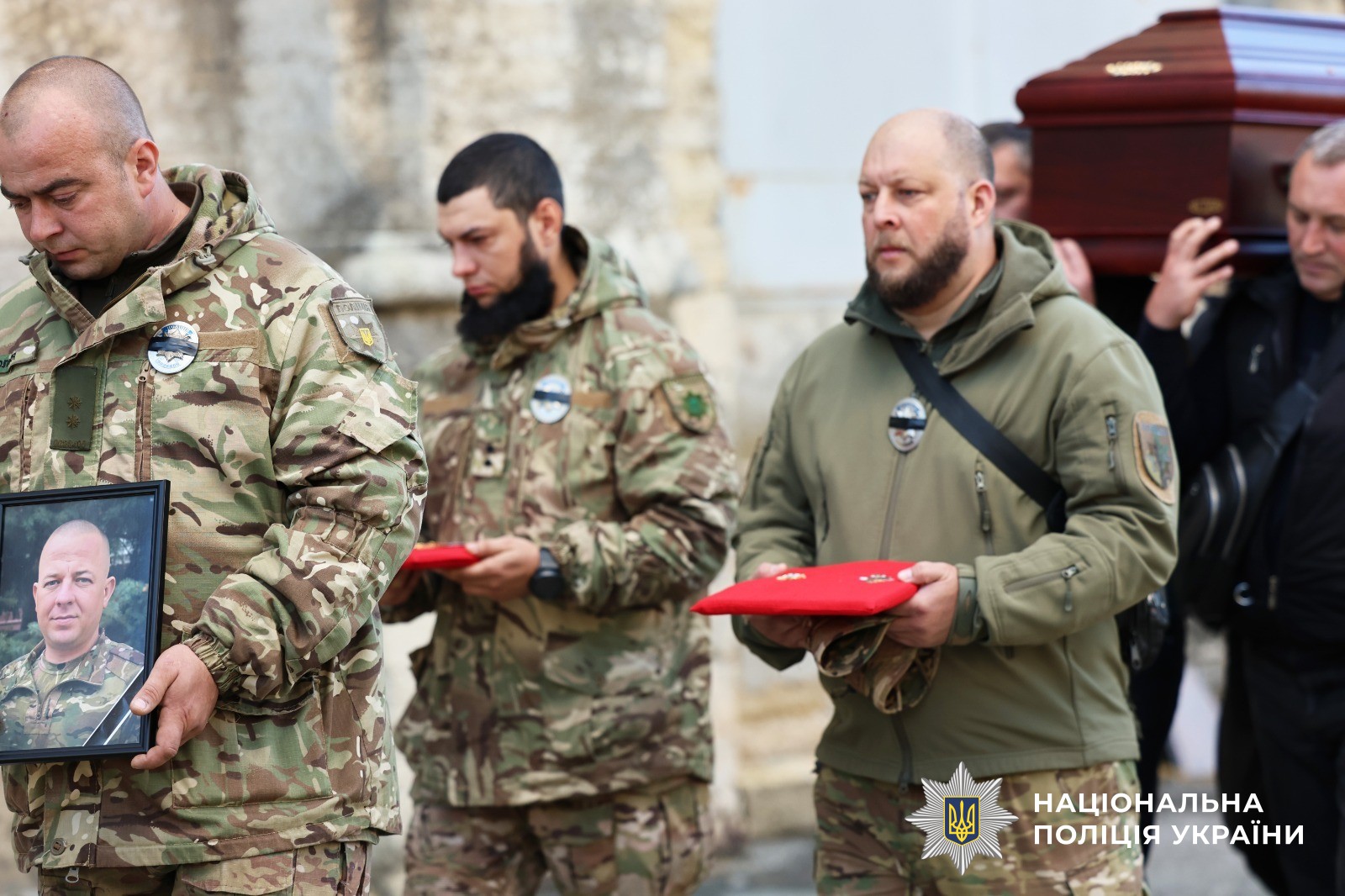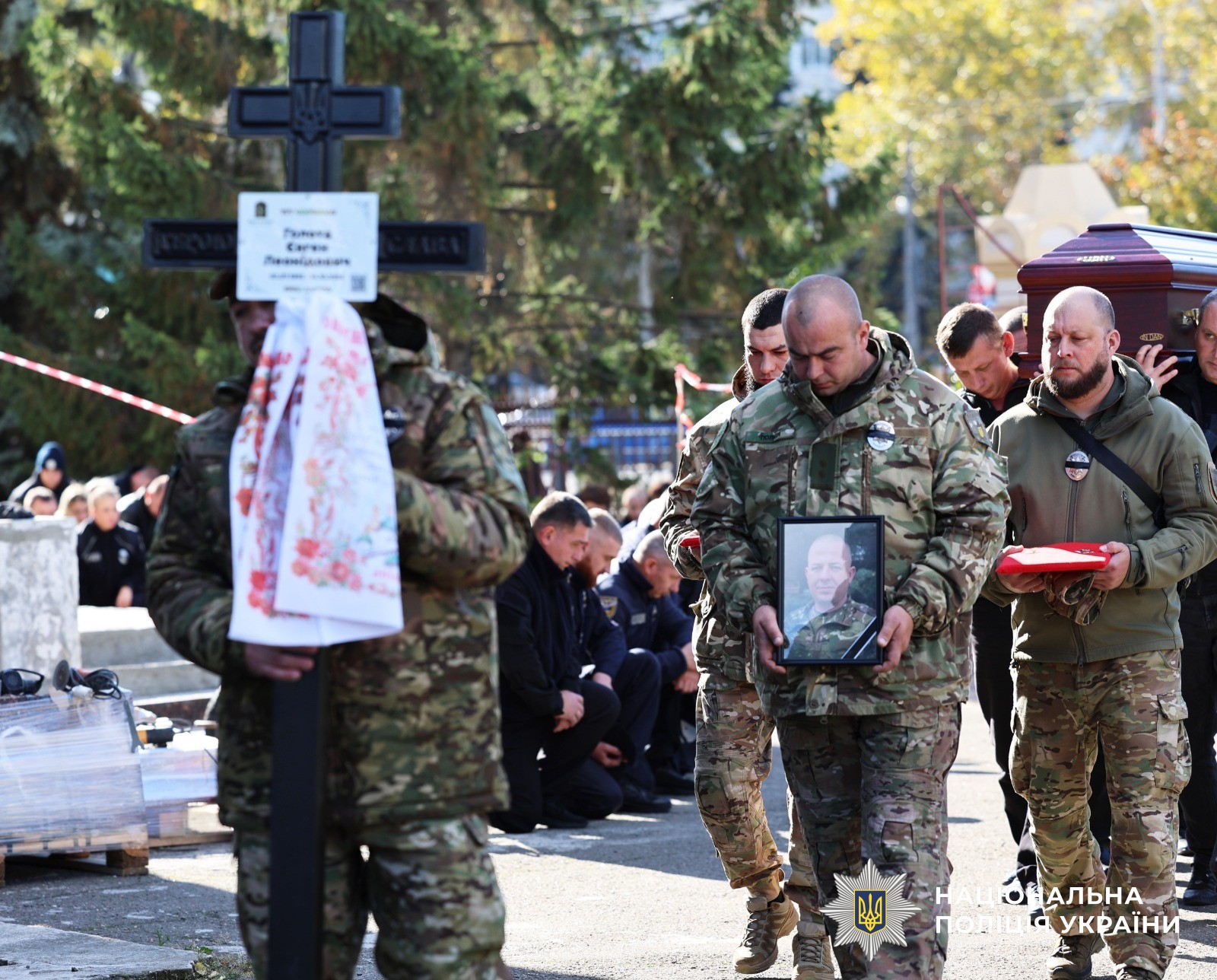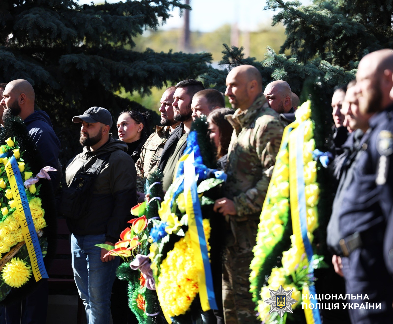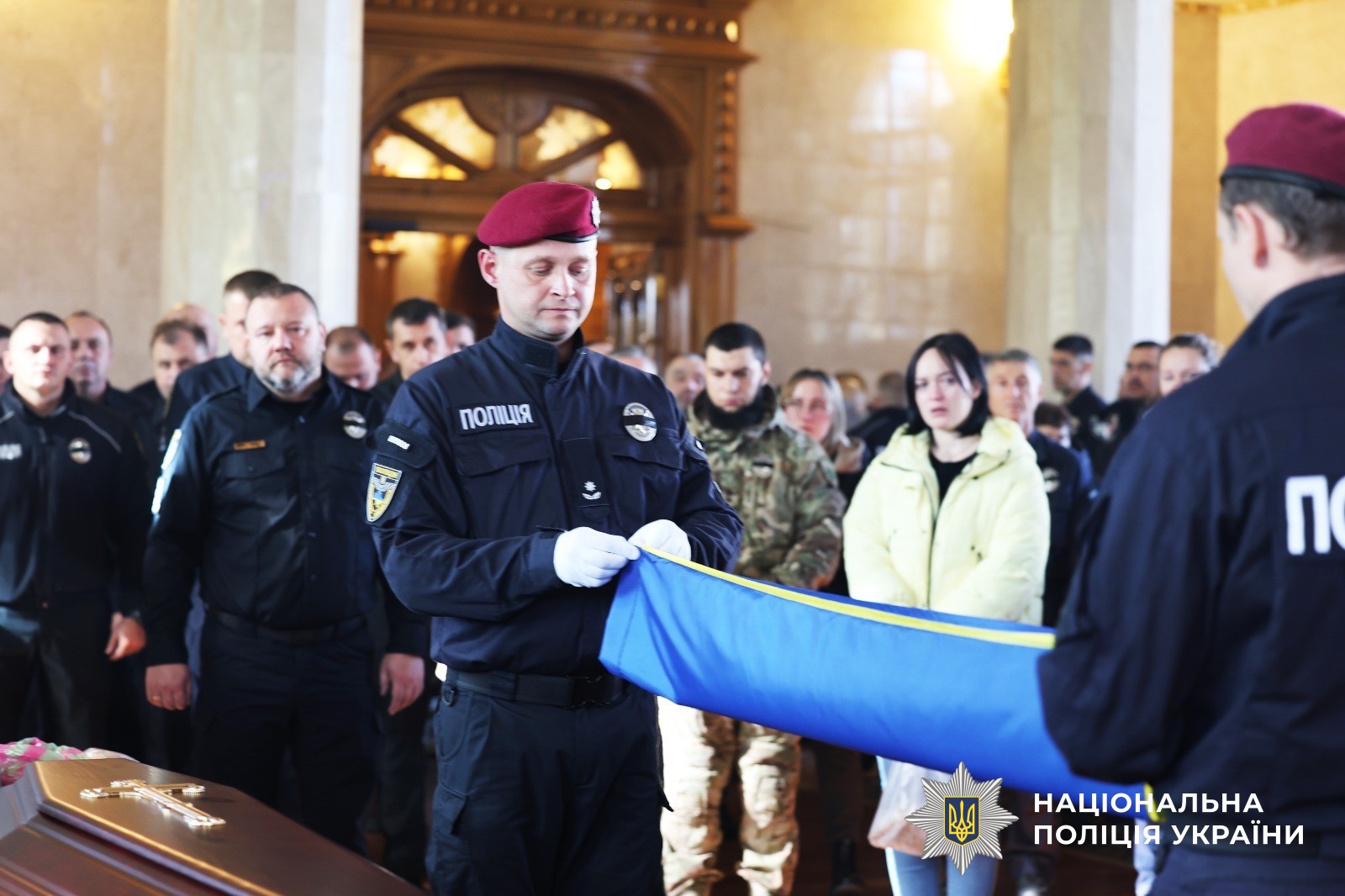Вшанувати пам'ять загиблого героя, підтримати його родину та провести поліцейського до небесного строю прийшли колеги, керівництво поліції, друзі та побратими.