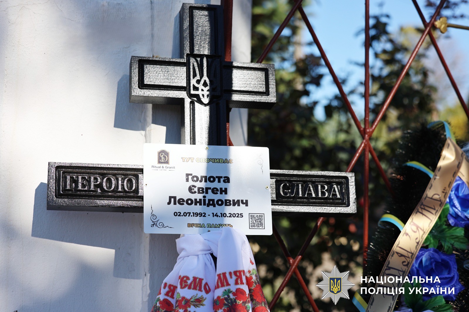 - Сьогодні ми схиляємо голови у жалобі та сумуємо разом з вами у цей скорботний час. Немає слів, здатних зменшити біль втрати. Але знайте - ми поруч. Євген був і назавжди залишиться прикладом мужності, відданості й любові до України. Ми завжди пам’ятатимемо його як Героя, який до останнього подиху залишався вірним своєму народові. Світла пам’ять! - звернувся до рідних полеглого правоохоронця заступник начальника обласного главку поліції Олексій Попков.