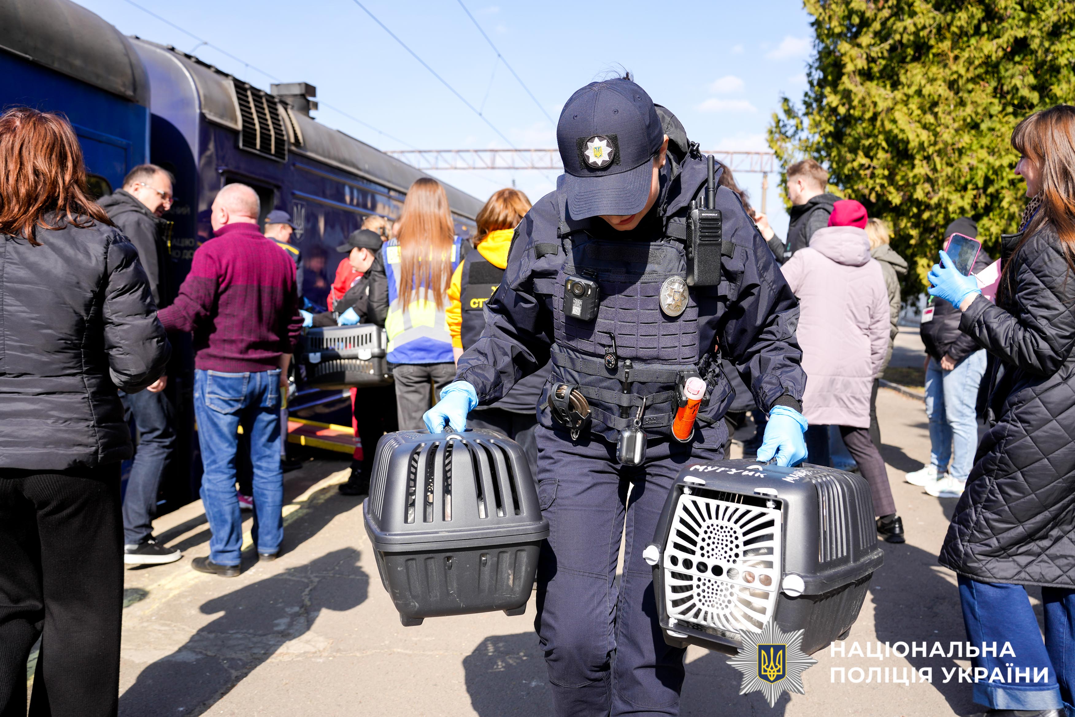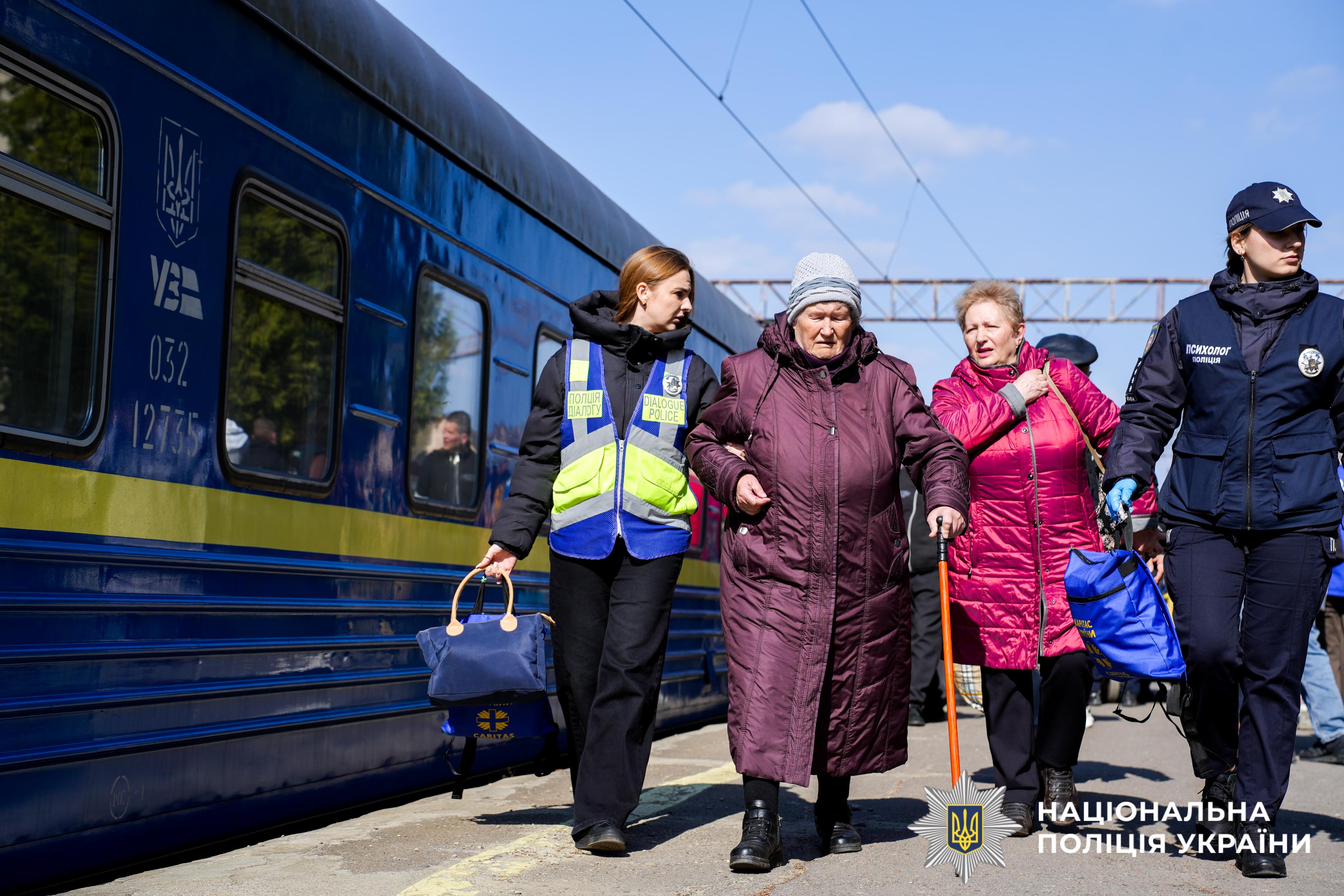 Евакуйованих зустрічали поліцейські, медики, рятувальники та представники влади й Центру Життєстійкості. Вони разом допомагали переселенцям вийти з потягу, годували, допомагали завантажити речі у транспорт та консультували під час реєстрації.
