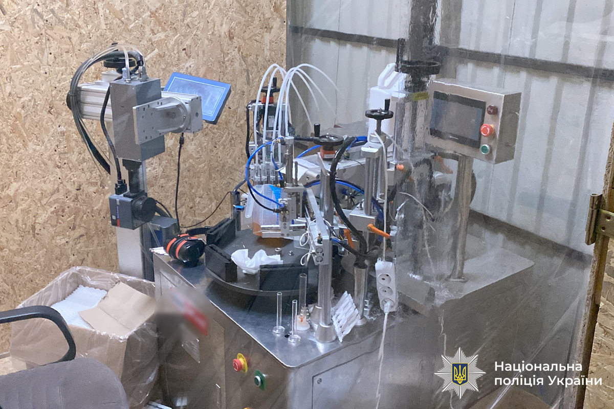 Правоохоронці також виявили конвеєрну лінію для автоматичного наклеювання етикеток, фасування та маркування рідин, установки для заливання нікотину й інших рідин в ампульні упаковки з подальшим запаюванням, а також компресори та наливні апарати.