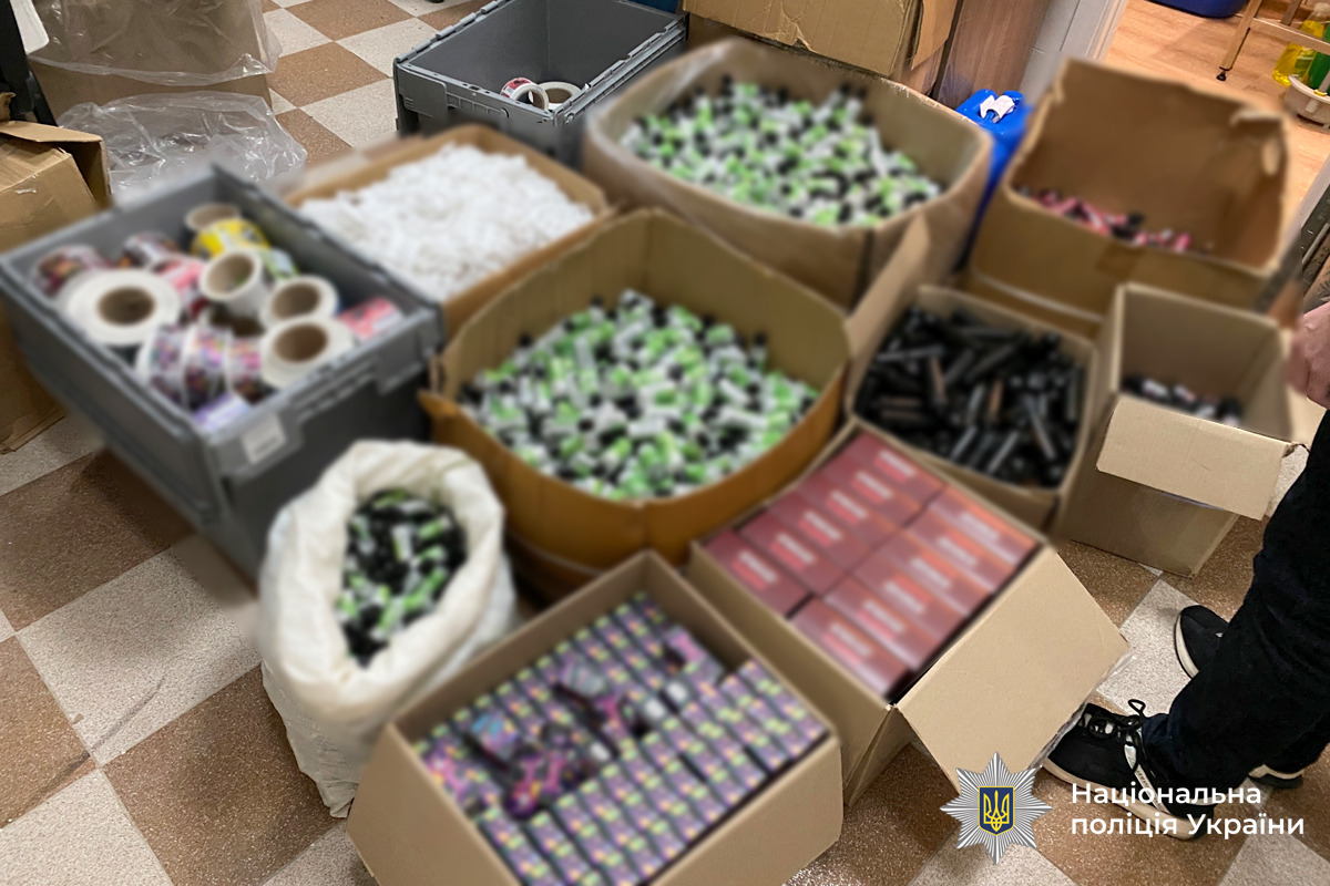 Під час слідчих дій вилучено понад 25 тисяч наборів для самозамішування, більше ніж 120 тисяч ємностей із гліцерином, нікотином та різними ароматизаторами, а також сировину — 800 літрів гліцерину і понад 550 літрів ароматизаторів. Крім того, вилучено сотні коробів і мішків з упаковкою, етикетками та тарою.