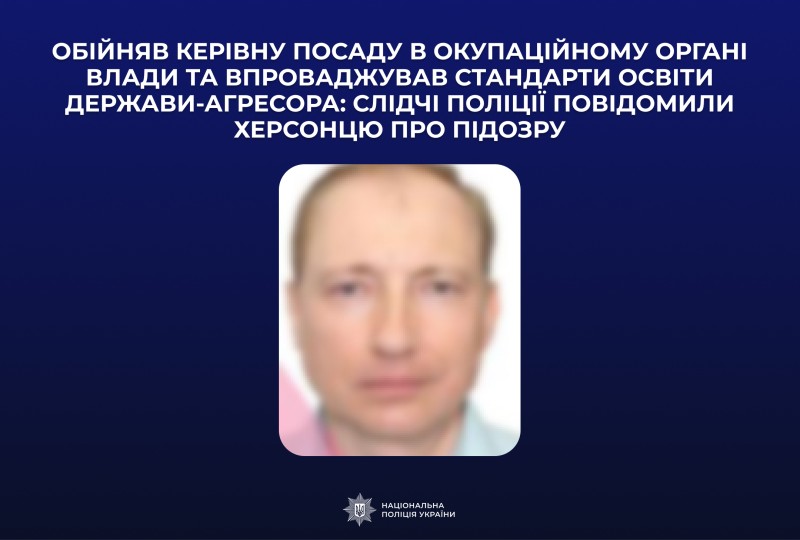 Обійняв керівну посаду в окупаційному органі влади та впроваджував стандарти освіти держави-агресора: слідчі поліції повідомили херсонцю про підозру
