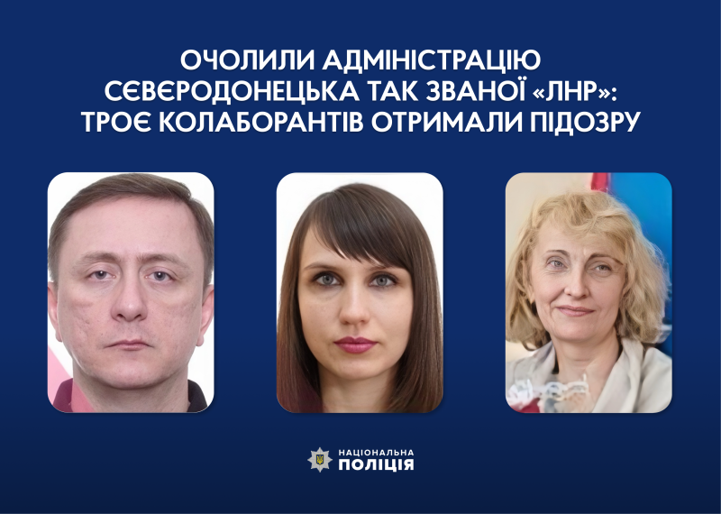 Підрозділи Нацполіції України продовжують збирати доказову базу злочинної діяльності осіб, які перейшли на бік країни-агресора та працюють в окупаційних органах влади на захоплених ворогом територіях. У ході проведення таких заходів трьох таких громадян викрили оперативники управління стратегічних розслідувань в Луганській області спільно зі слідчими ГУСБУ в Донецькій та Луганській областях. Усі фігуранти — мешканці Луганської області, які після окупації регіону обійняли посади в псевдоорганах місцевої влади.