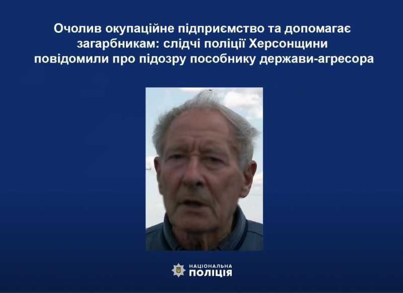 Очолив окупаційне підприємство та допомагає загарбникам: слідчі поліції Херсонщини повідомили про підозру пособнику держави-агресора