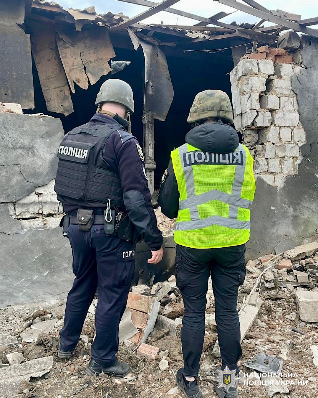На місцях ударів працюють слідчо-оперативні групи поліції, які встановлюють остаточні наслідки воєнних злочинів. Групи слідчих проводять ретельний огляд, фіксують наслідки обстрілу та документують воєнний злочин, вчинений військами рф.