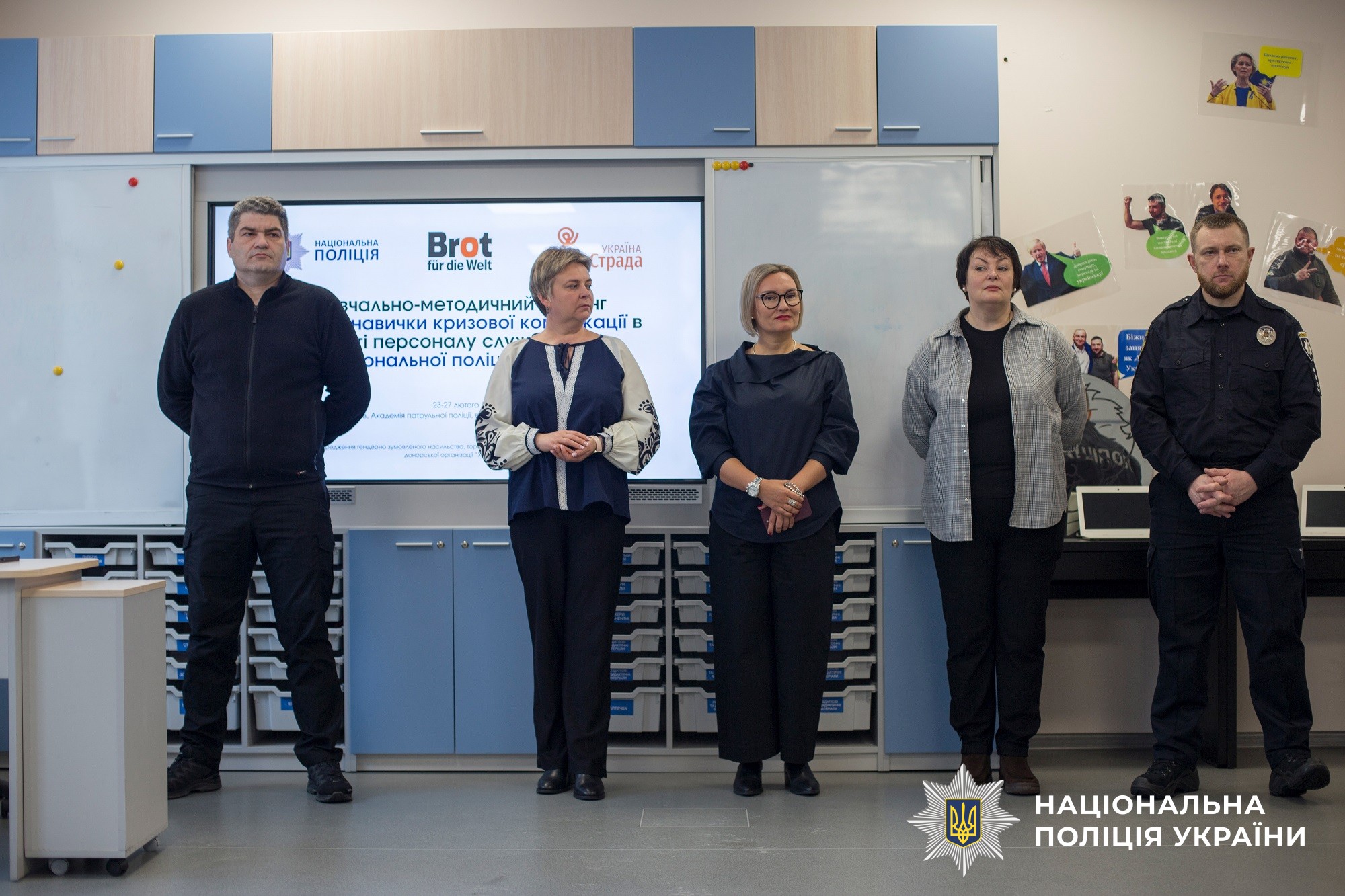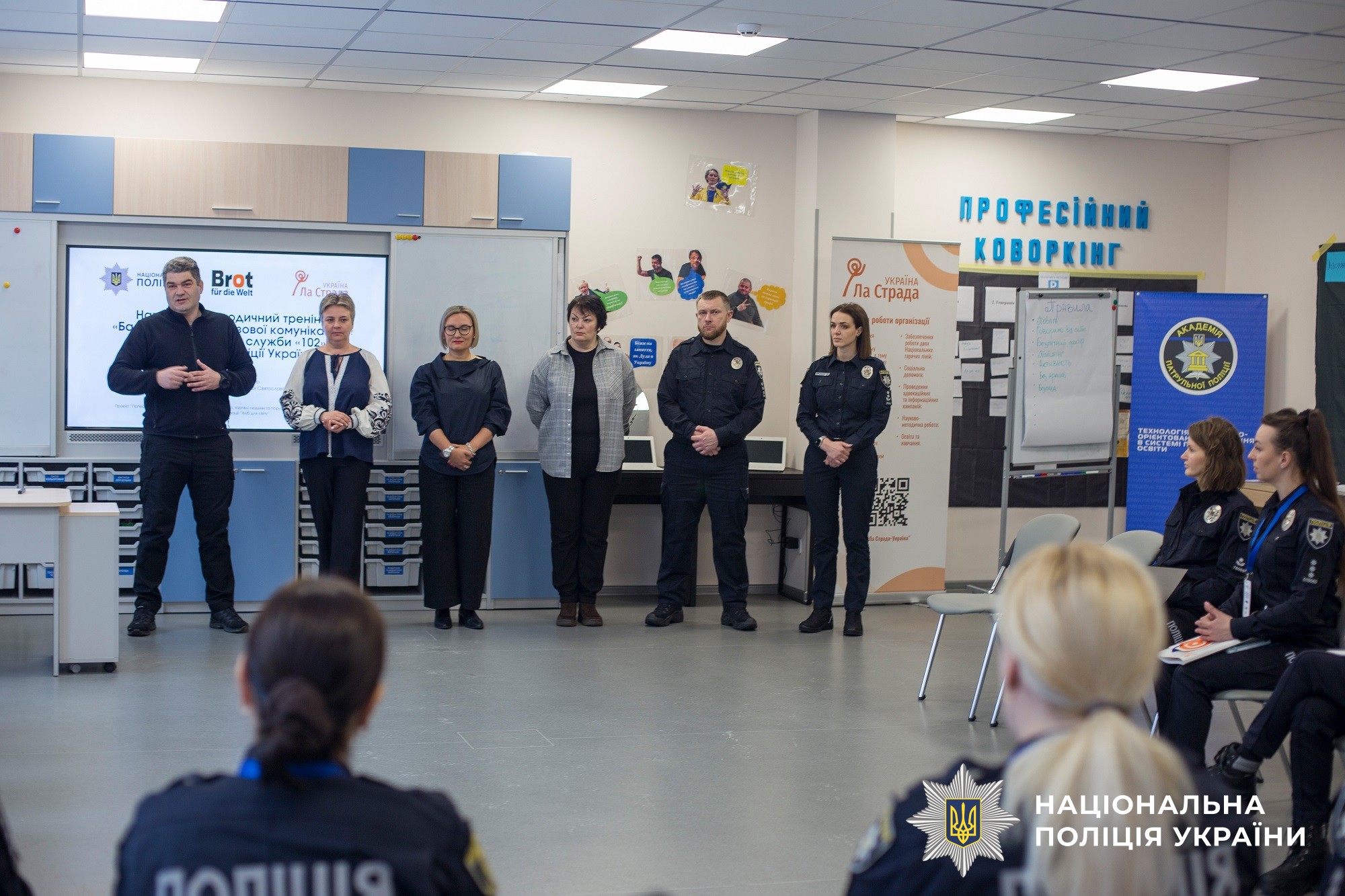 23–27 лютого у Києві відбувся 5-денний навчально-методичний тренінг на тему «Базові навички кризової комунікації в роботі персоналу служби «102» Національної поліції України» організований за підтримки Академії патрульної поліції, Ізраїльської коаліції травми (ITC) та Департаменту організаційно-аналітичного забезпечення та оперативного реагування Нацполіції. Участь у навчанні взяли працівники служби «102», які щодня приймають дзвінки від громадян, які перебувають у стані стресу чи кризи.