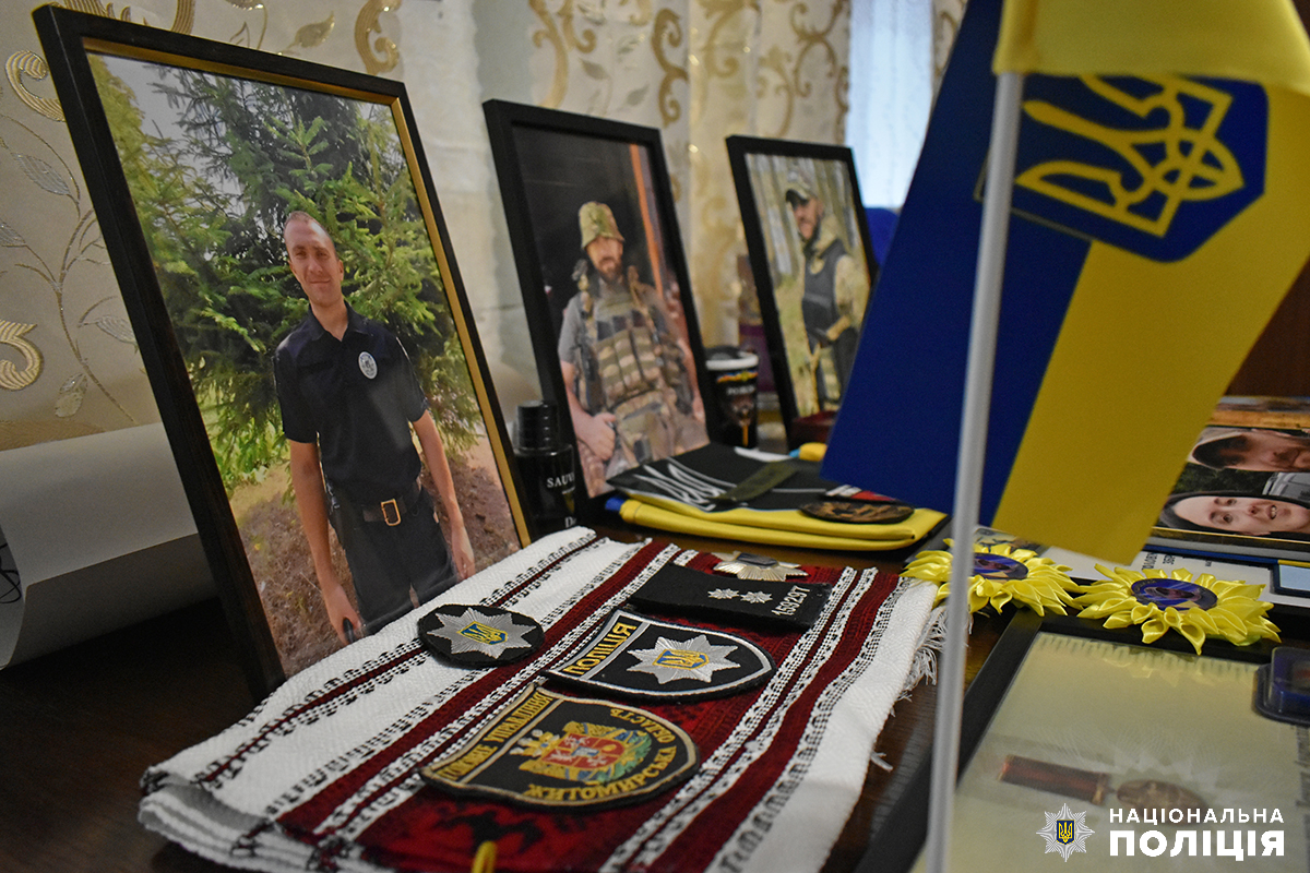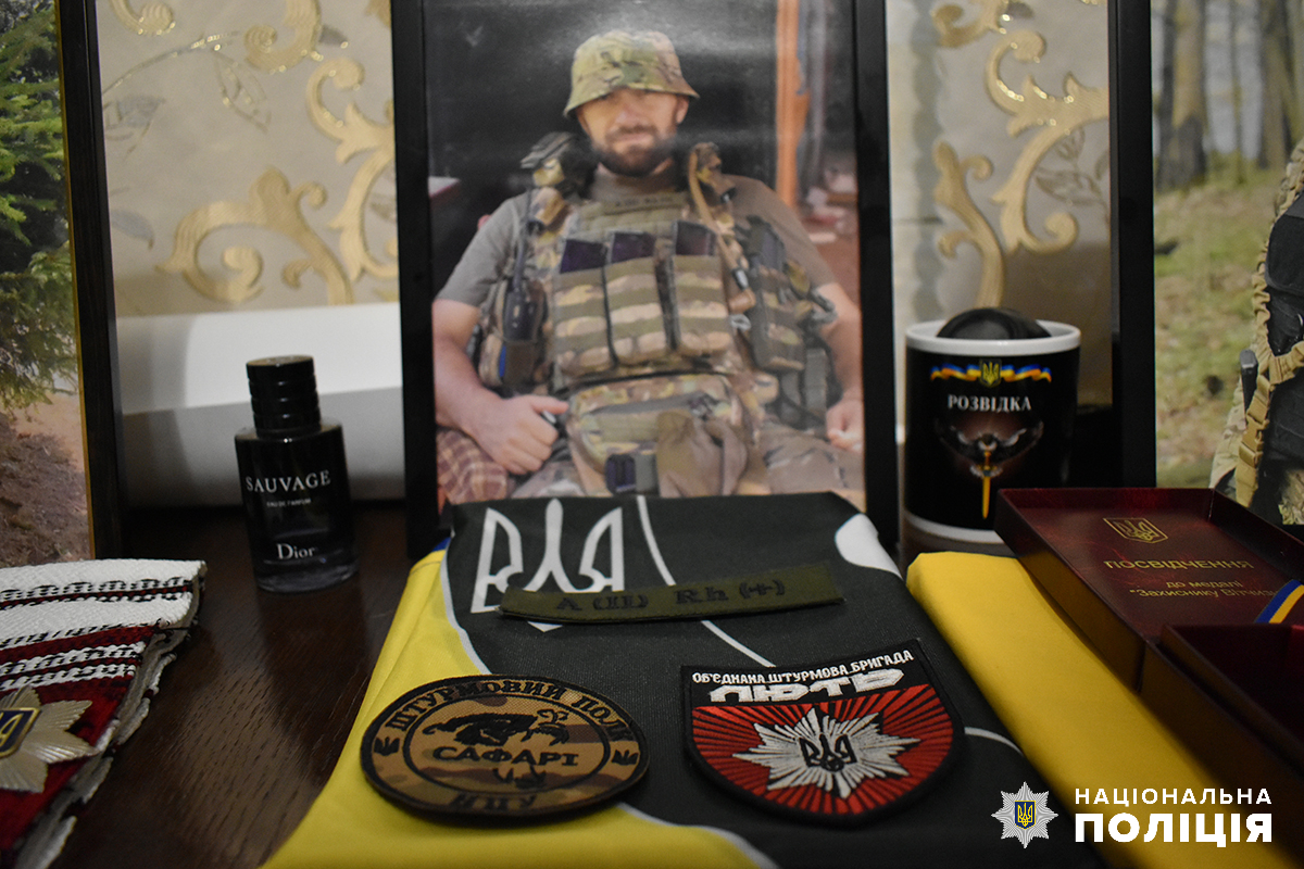 У кімнаті сина батьки зберігають пам’ять про нього. Тут — відомчі відзнаки та, на жаль, посмертні державні нагороди, бойові прапори підрозділів, в яких він служив, особисті речі та фотографії. Зі світлин усміхається мужній і вродливий хлопець у поліцейському однострої та в камуфляжі.