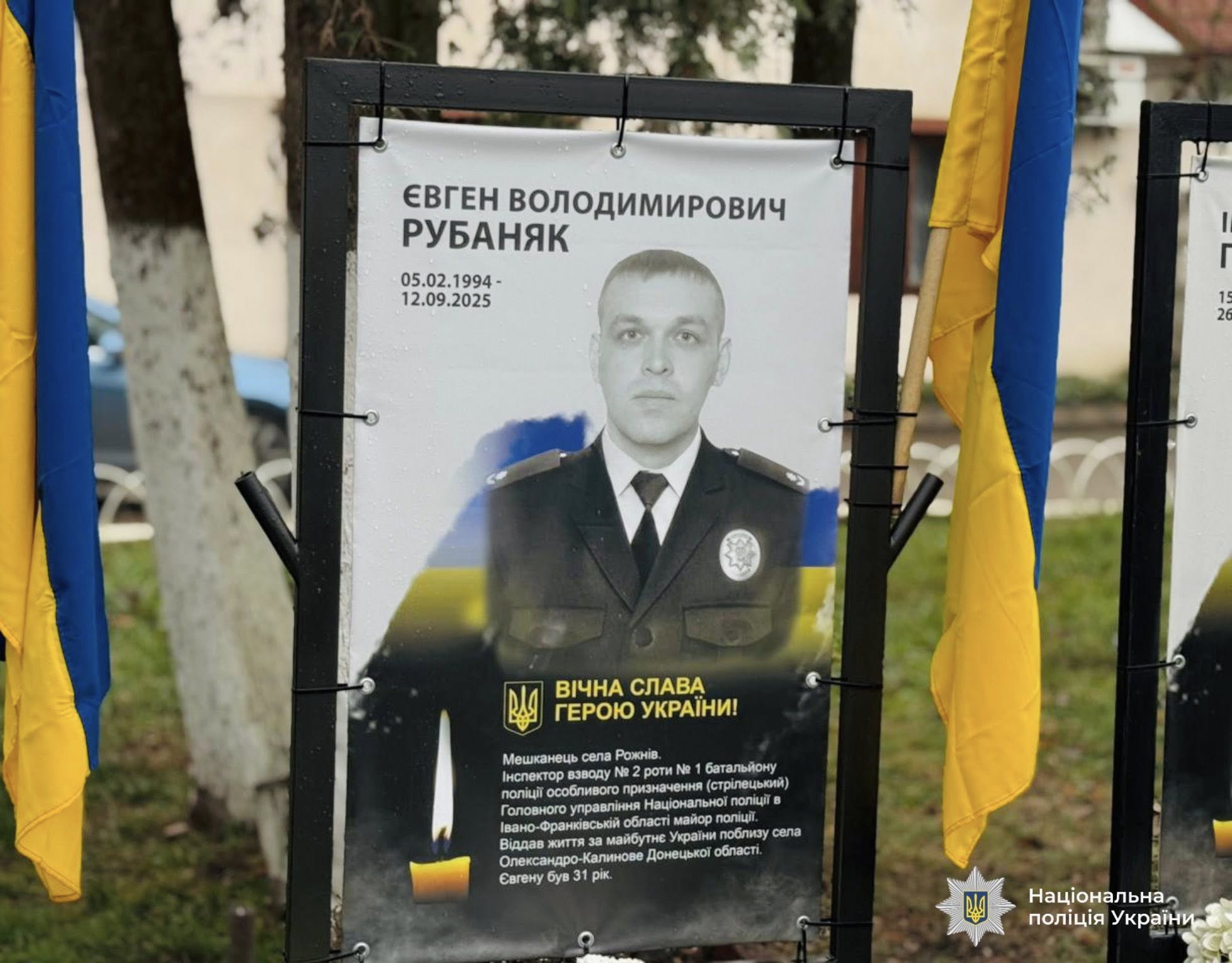 Пам’яті Євгена Рубаняка: на Косівщині встановили меморіальний банер загиблому поліцейському
