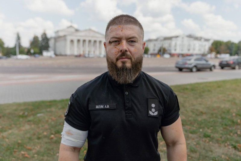 Він отримав поранення від уламків скла, але продовжив виконувати своє завдання, як і решта працівників МВС.