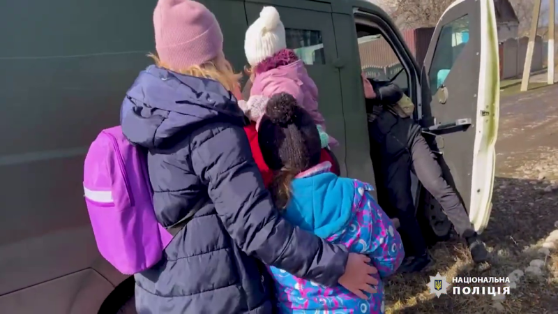 Під час крайнього рейсу поліцейські забрали з села Ласточкине шістьох людей: маму з двома дівчинками 3 та 6 років, ще одну жінку з 6-річною донькою та літнього чоловіка. Люди покинули рідні домівки після того, як росіяни поцілили з авіації в житловий будинок і обидва його мешканці загинули.