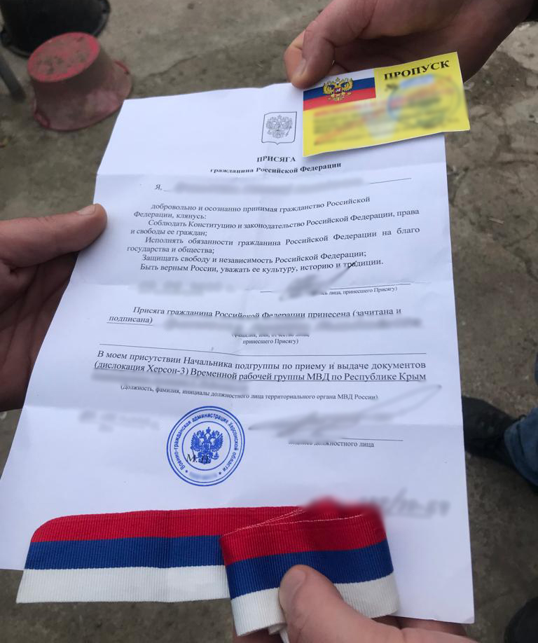 У ході проведених у фігурантів санкціонованих обшуків правоохоронці виявили й вилучили: бланк прийняття присяги громадянина рф, стрічку-триколор, перепустки із зображенням двоголового орла, службові посвідчення фейкового правоохоронного органу, листівки із закликом працевлаштування до незаконно створеної служби виконання покарань.