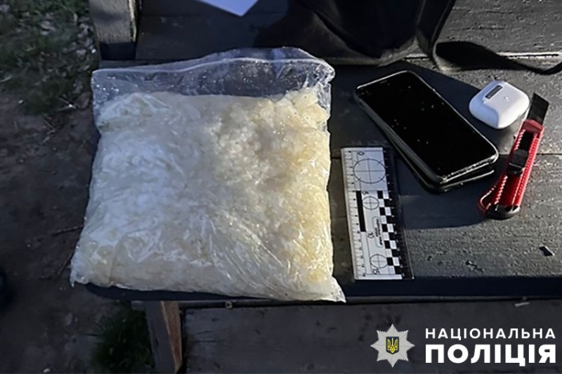«У ході першочергових слідчих дій у фігуранта вилучили поліетиленовий пакет, у якому знаходилася психотропна речовина, яку він мав намір збути. Експертиза підтвердила, що вилучене – психотроп «Алфа-PVP», вагою 1,2 кг. 31-річного уродженця Житомирської області затримали в порядку статті 208 Кримінального процесуального кодексу України».