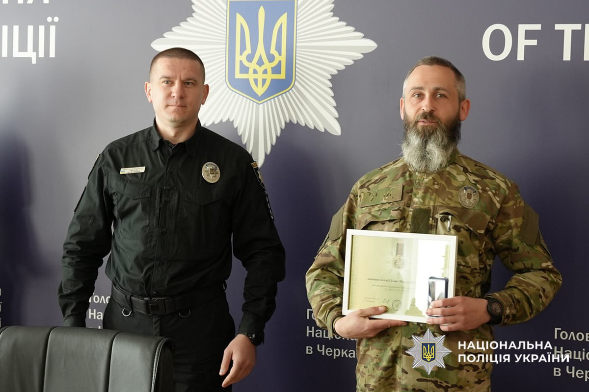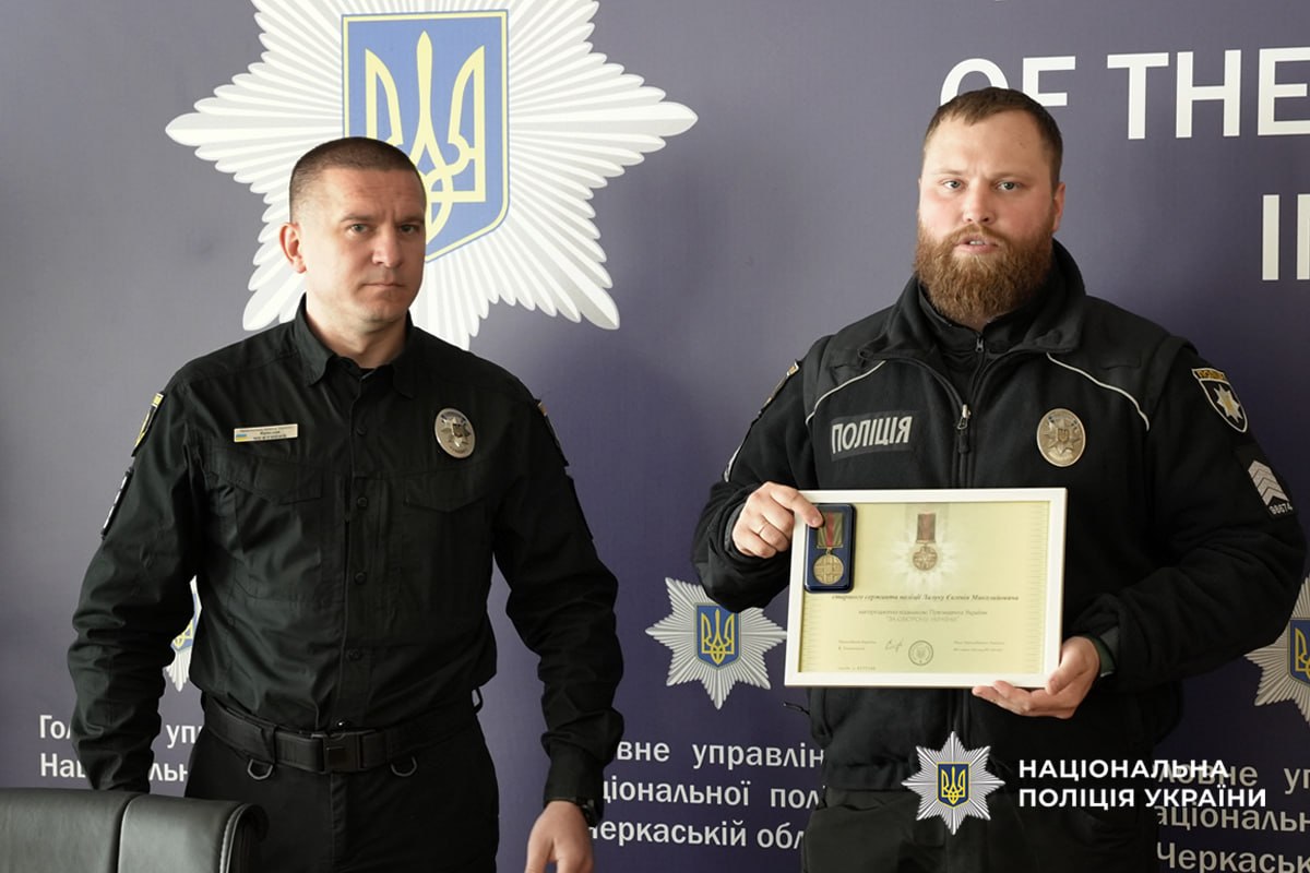 Відзнаки Президента України «За оборону України», нагрудні знаки «Срібний хрест», «Хрест Сухопутних військ» та подяки МВС України отримали поліцейські, які виконували бойові завдання на фронті. Нагороди колегам вручив начальник Головного управління Національної поліції в Черкаській області Ярослав Меженний.
