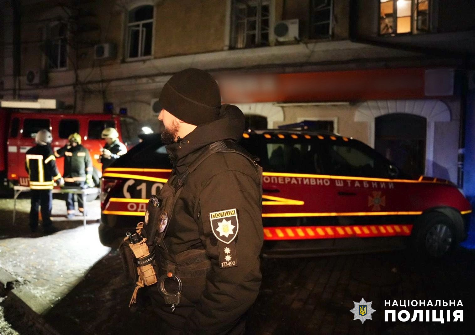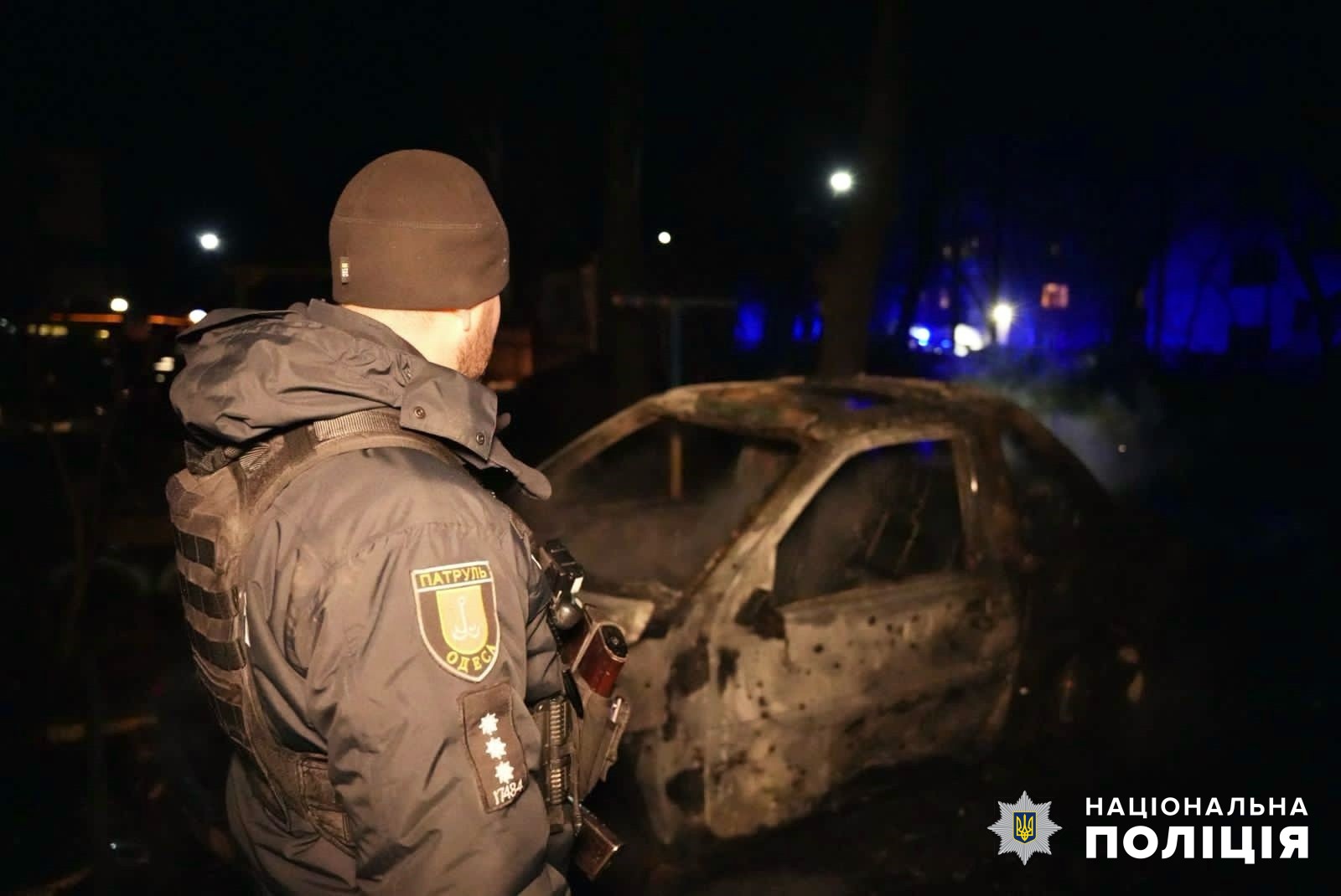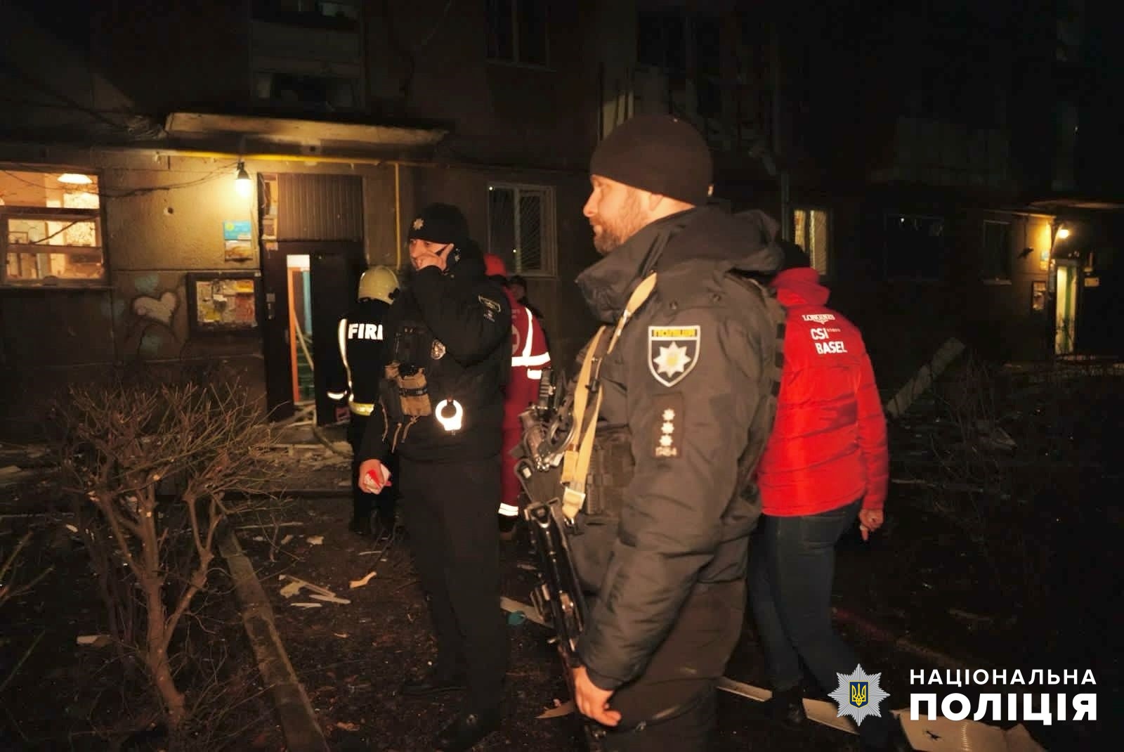 Поліцейські документують наслідки дронової атаки російських окупаційних військ на Одесу