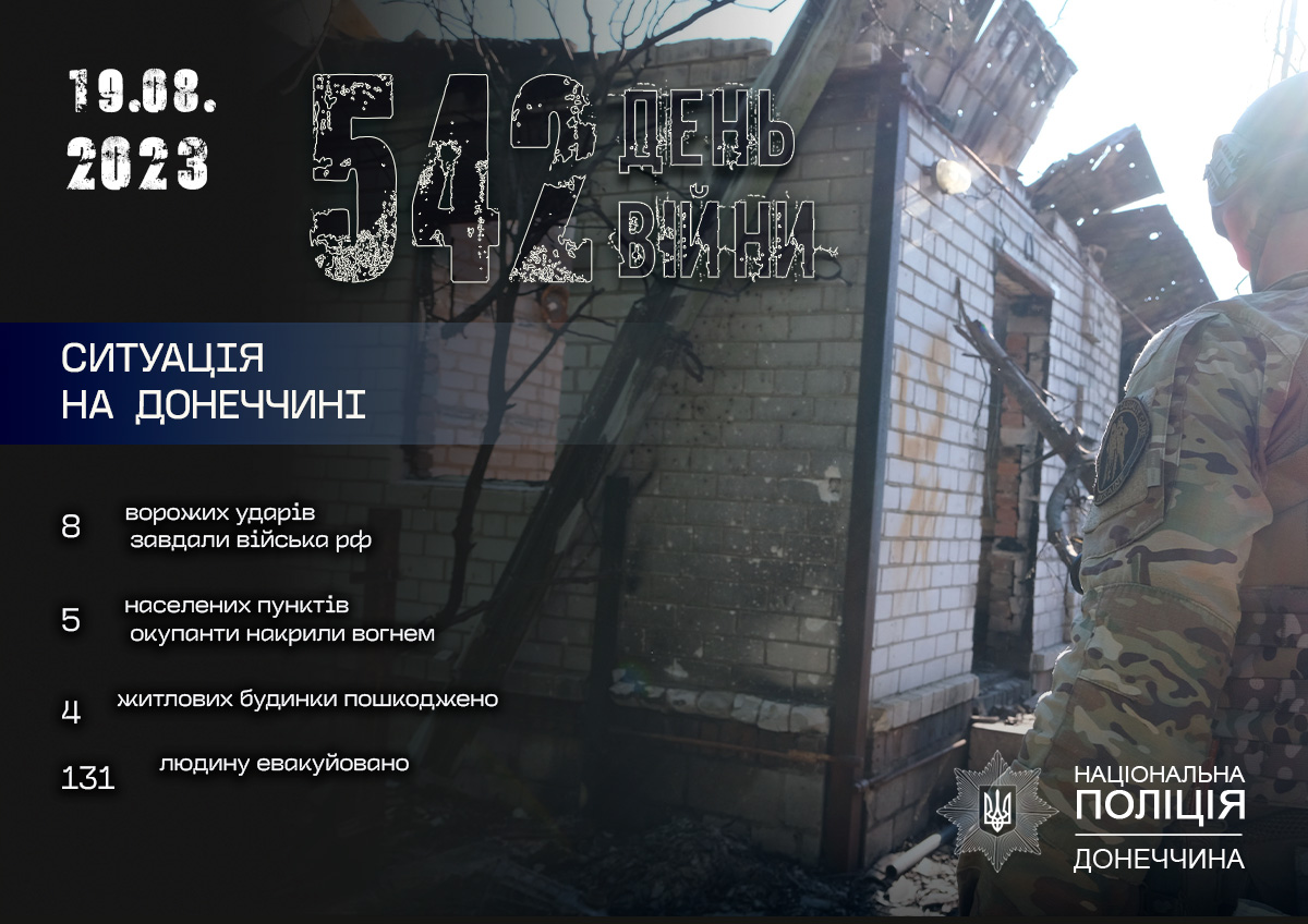 Поліцейські Донеччини протягом доби зареєстрували 8 ударів з боку росії
