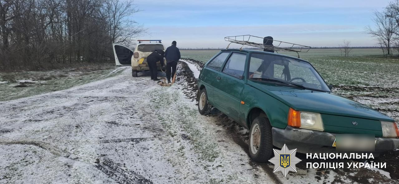 Так, до поліції надійшло повідомлення про те, що на польовій дорозі біля одного з населених пунктів Борозенської громади водій з’їхав зі слизької ґрунтової дороги та не зміг самостійно виштовхати автомобіль. Ситуацію ускладнювали сильний мороз, вітер, а також небезпека можливих обстрілів із боку російських військ.